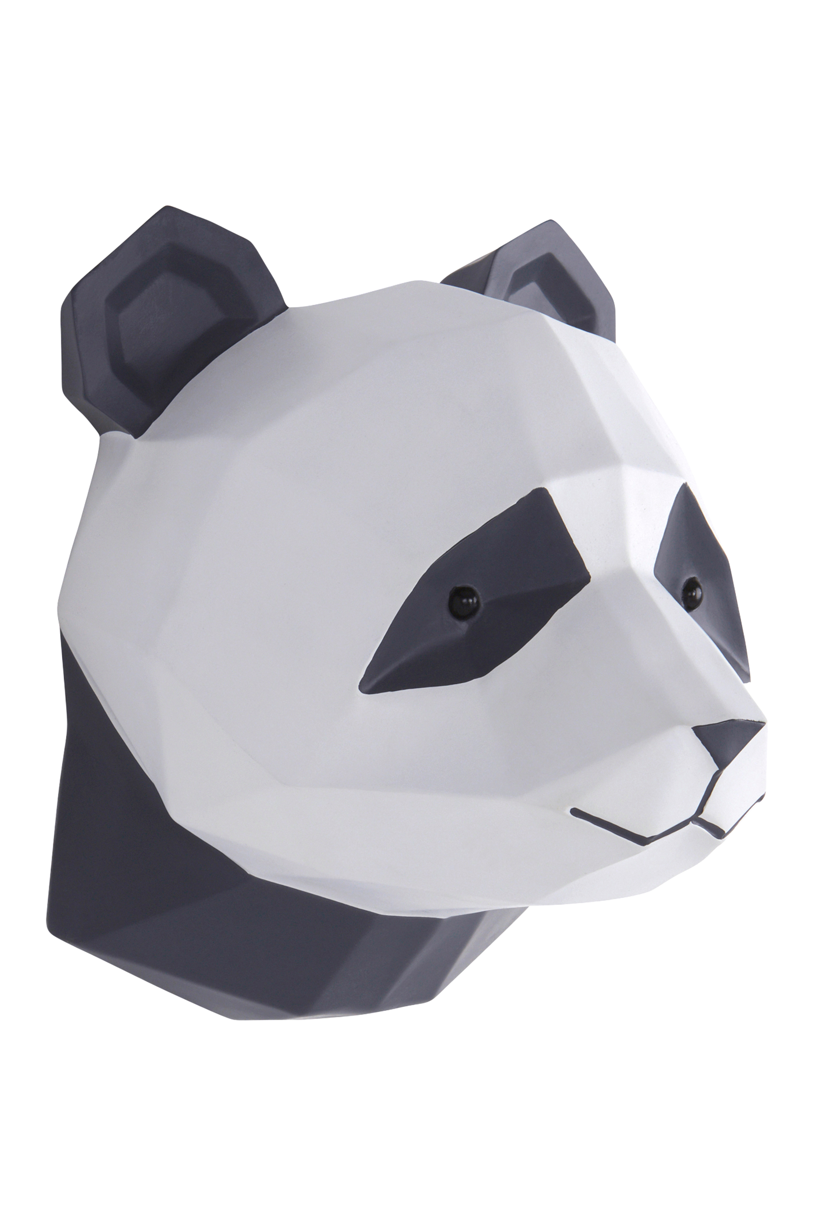 Veggdekor av polyresin i form av en fin panda. Pandaen har hull på baksiden for oppheng.