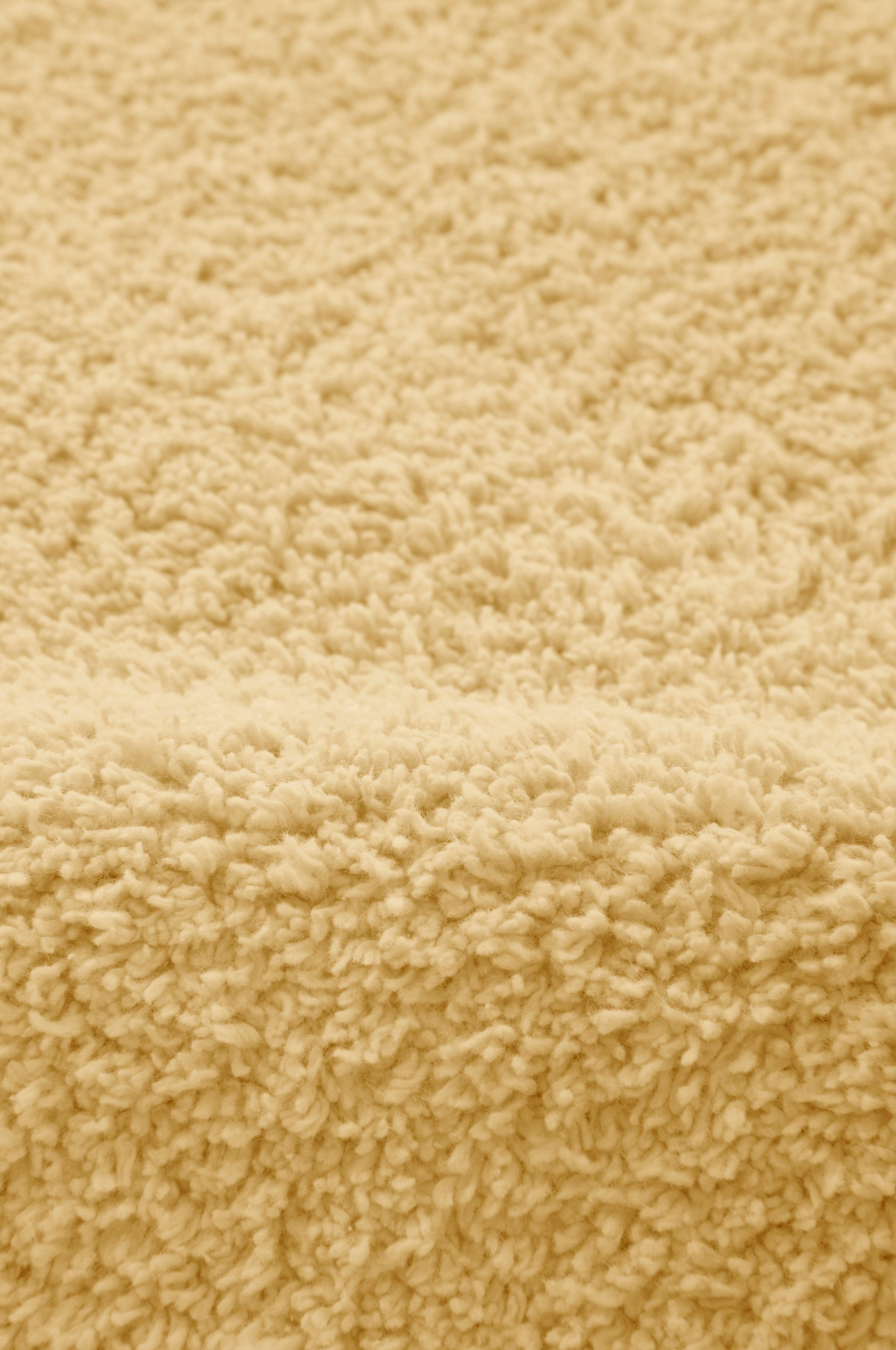 Tuftet teppe av bomull med myk lugg. Teppet er ensfarget i sommerlige farger som gir glade vibrasjoner. Frynselengde 10 cm. Lugghøyde 1 cm. Tykkelse 1,1 cm. 1500 g/m².