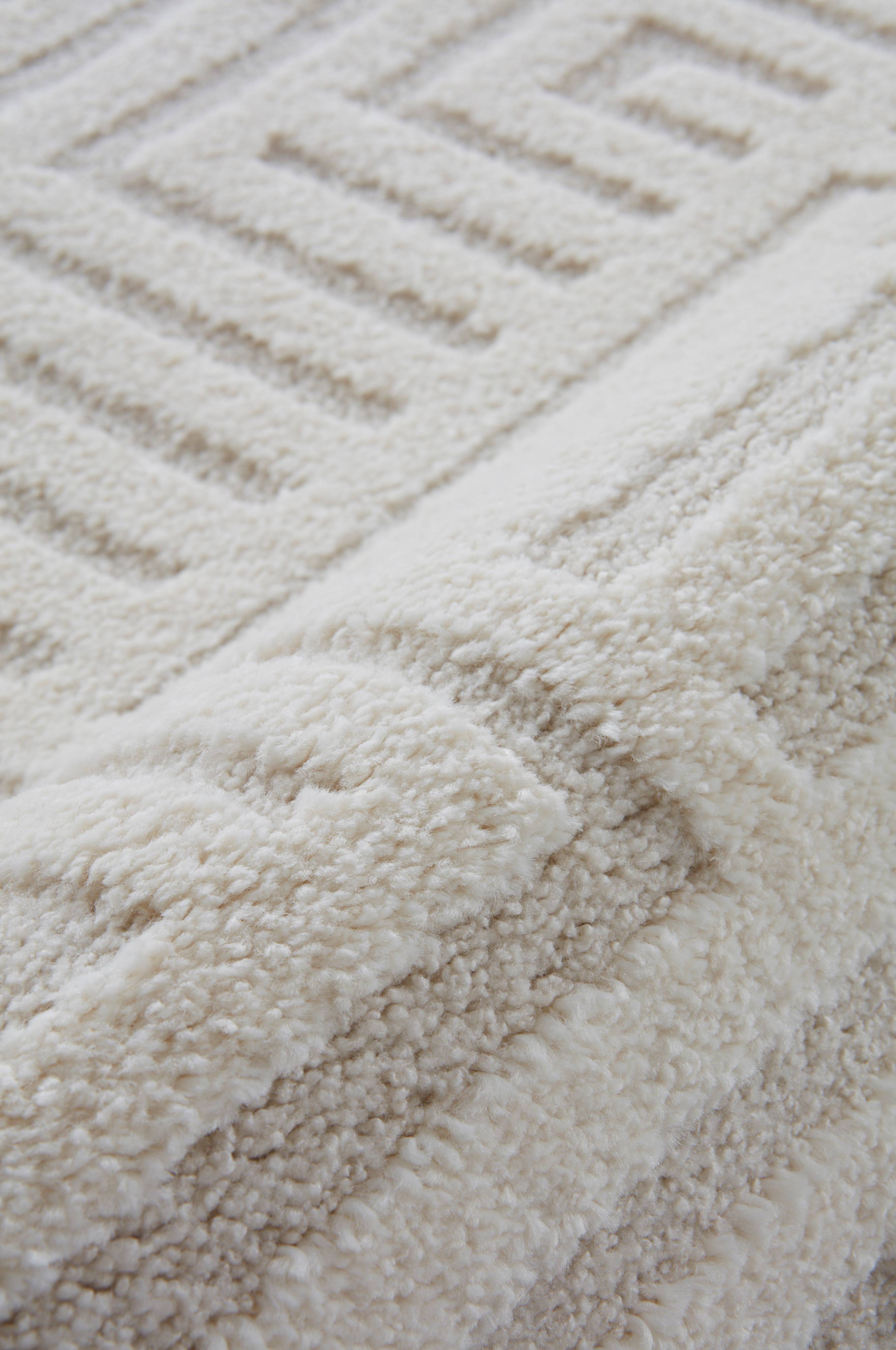 Glattvevd teppe med geometrisk mønster ton-i-ton som også skapes av teksturen i veven. Kvadrater er vekslet om hverandre til et effektfullt mønster. Teppet er mykt og behagelig. Tykkelse 1,6 cm. 1750 g/m².