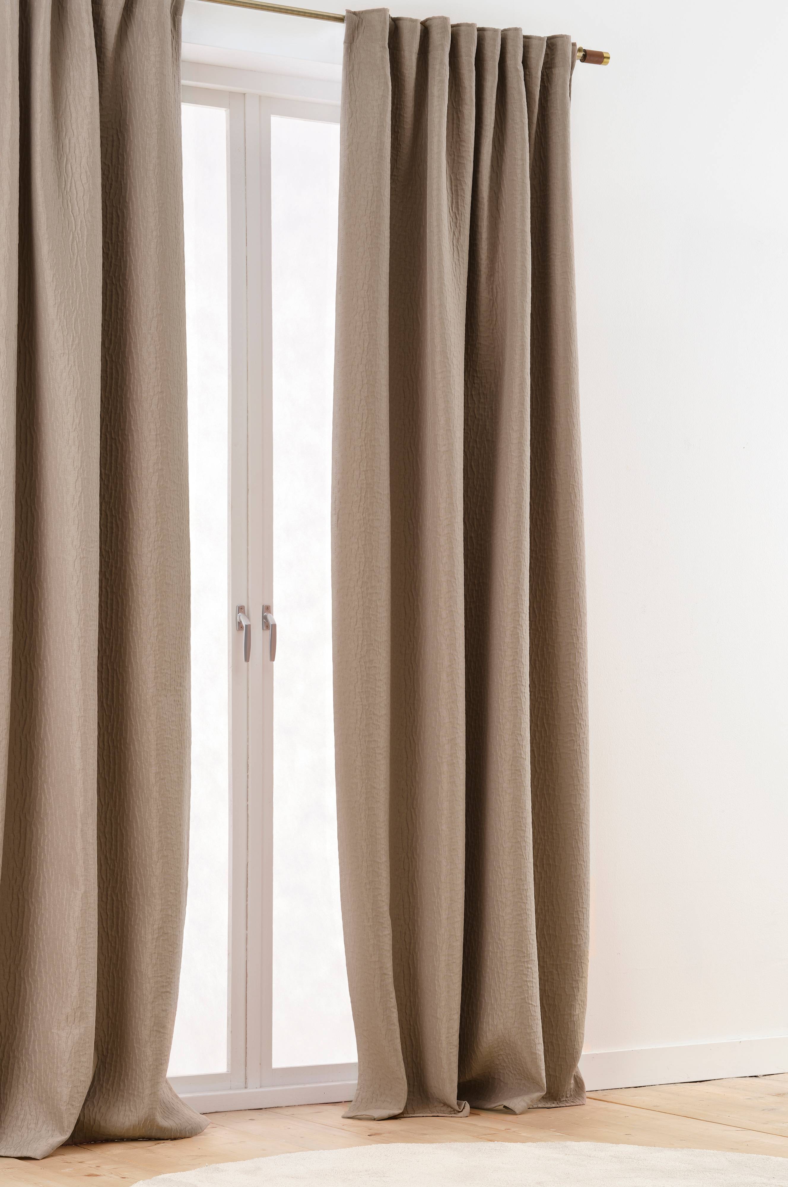 En gardinlengde for mørklegging, produsert av polyester. Gardinen er tettvevd slik at det ikke er nødvendig med belegg på baksiden. NOCTIS har boblete overflate, og faller fint når du henger den opp. På dagtid drar du lengden til siden og får inn lyset. Vær oppmerksom på at de ulike fargene varierer i lystetthet. Multifunksjonsbåndet gir deg muligheten til å variere opphengingen med skjult hempe, kanal samt foldebånd for fingerkroker.