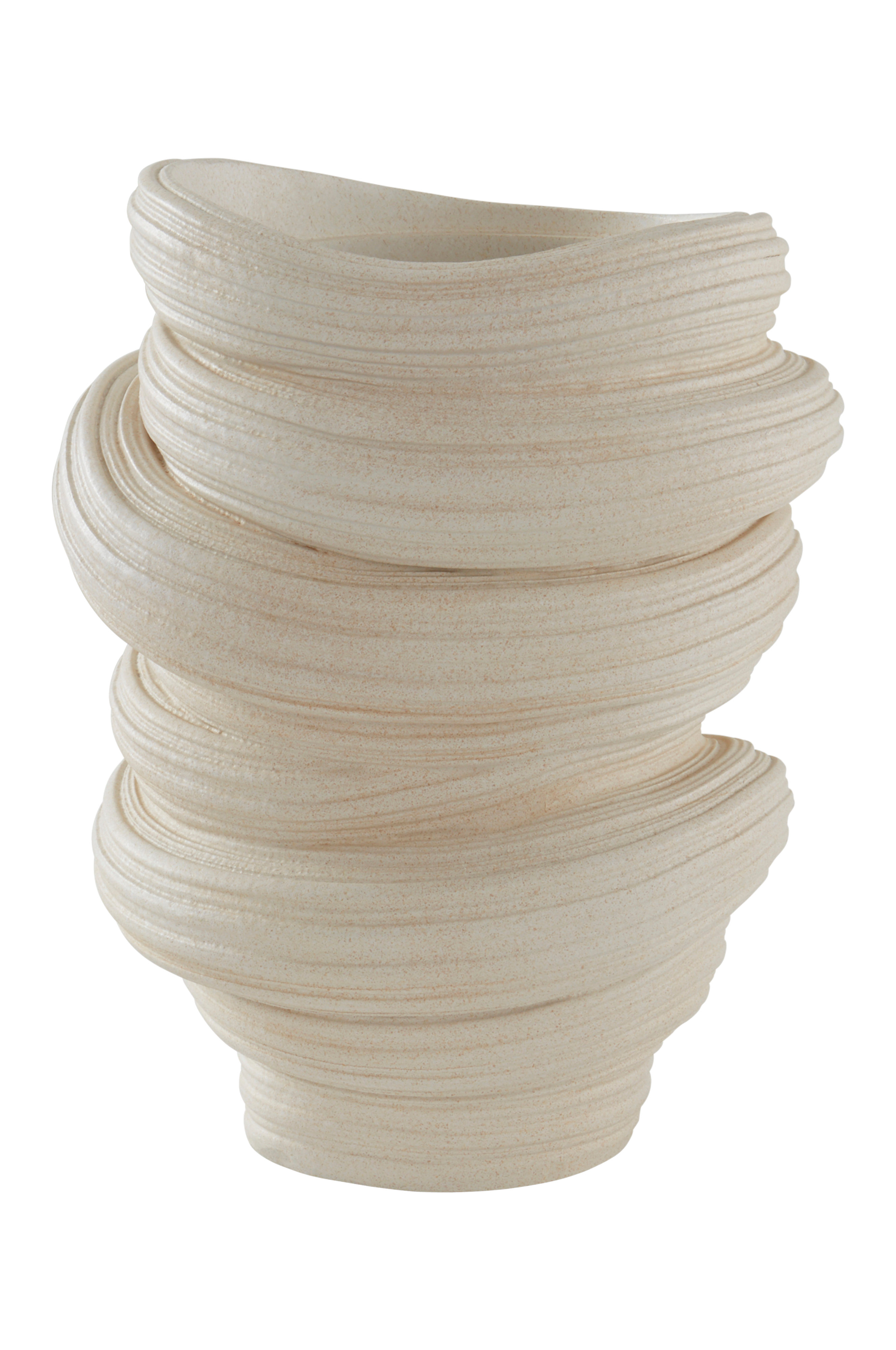 Dekorvase av polyresin i en lekker, sprayet form som er like dekorativ både med og uten kvister i. Vasen er diskre i fargen, og formen fanger all oppmerksomhet. Vasens størrelse gjør den ekstra flott.