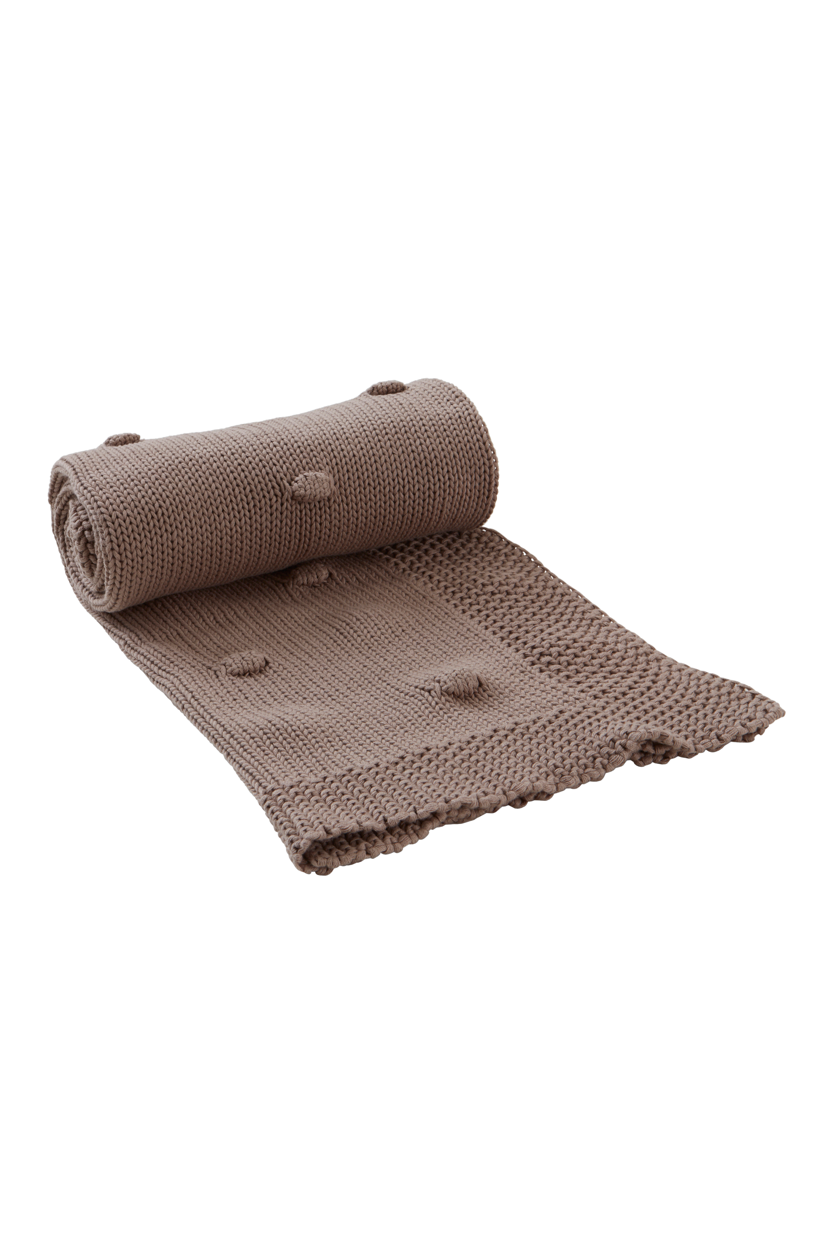Ensfarget, strikket babyteppe i økologisk bomull med boblet mønsterstrikk og fint strikket, bred bord rundt. Det myke babyteppet passer bra å ha i vuggen, barnevognen og sprinkelsengen og det er koselig å svøpe rundt det lille barnet i armene.