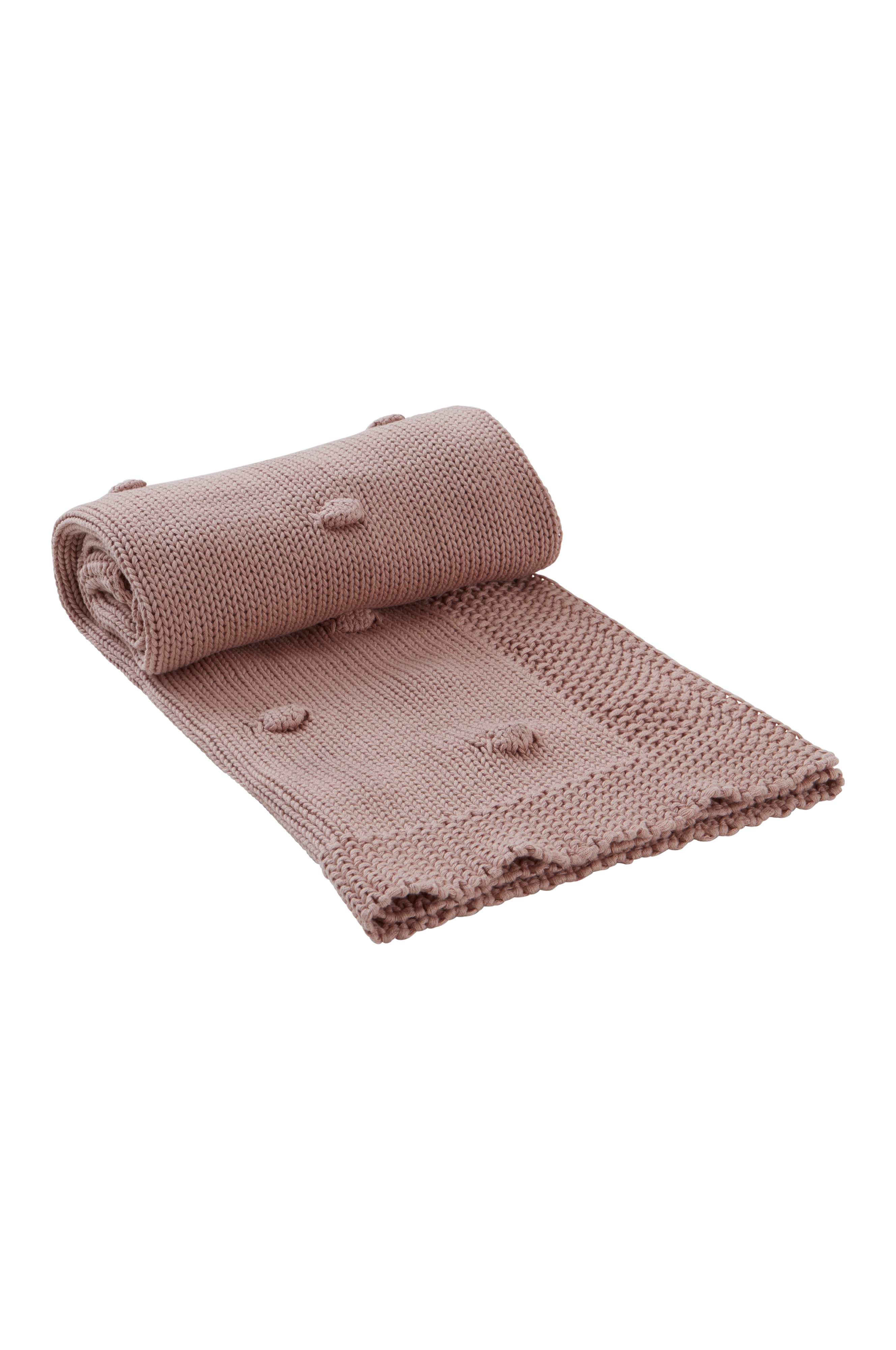 Ensfarget, strikket babyteppe i økologisk bomull med boblet mønsterstrikk og fint strikket, bred bord rundt. Det myke babyteppet passer bra å ha i vuggen, barnevognen og sprinkelsengen og det er koselig å svøpe rundt det lille barnet i armene.