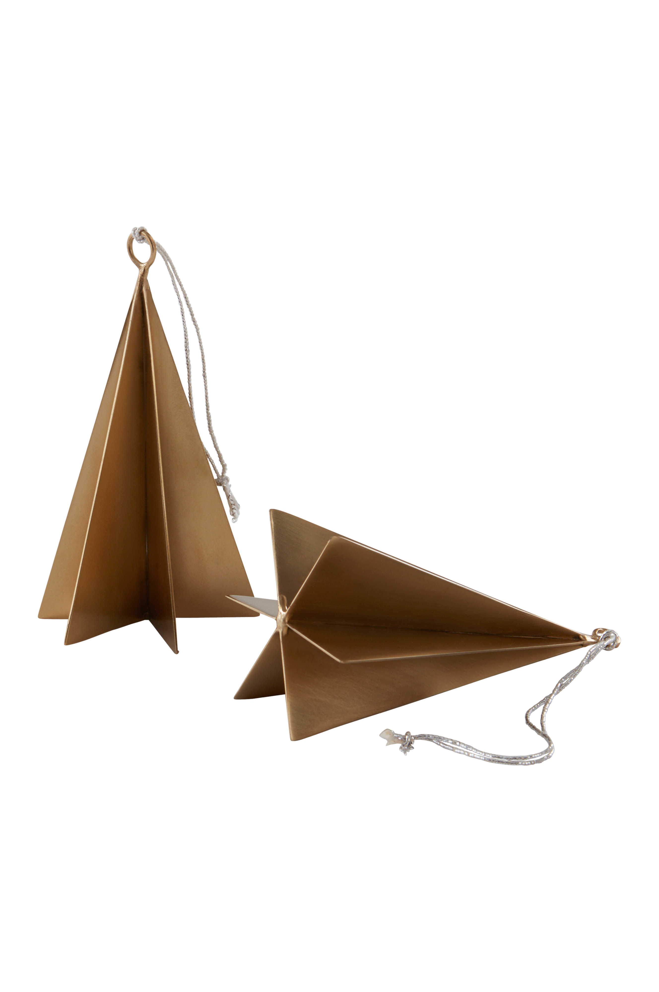 2-pk med dekor av stål. De stiliserte trærne har løkke og snor øverst slik at du kan henge de opp i et vindu, i juletreet eller der du vil pynte litt ekstra.