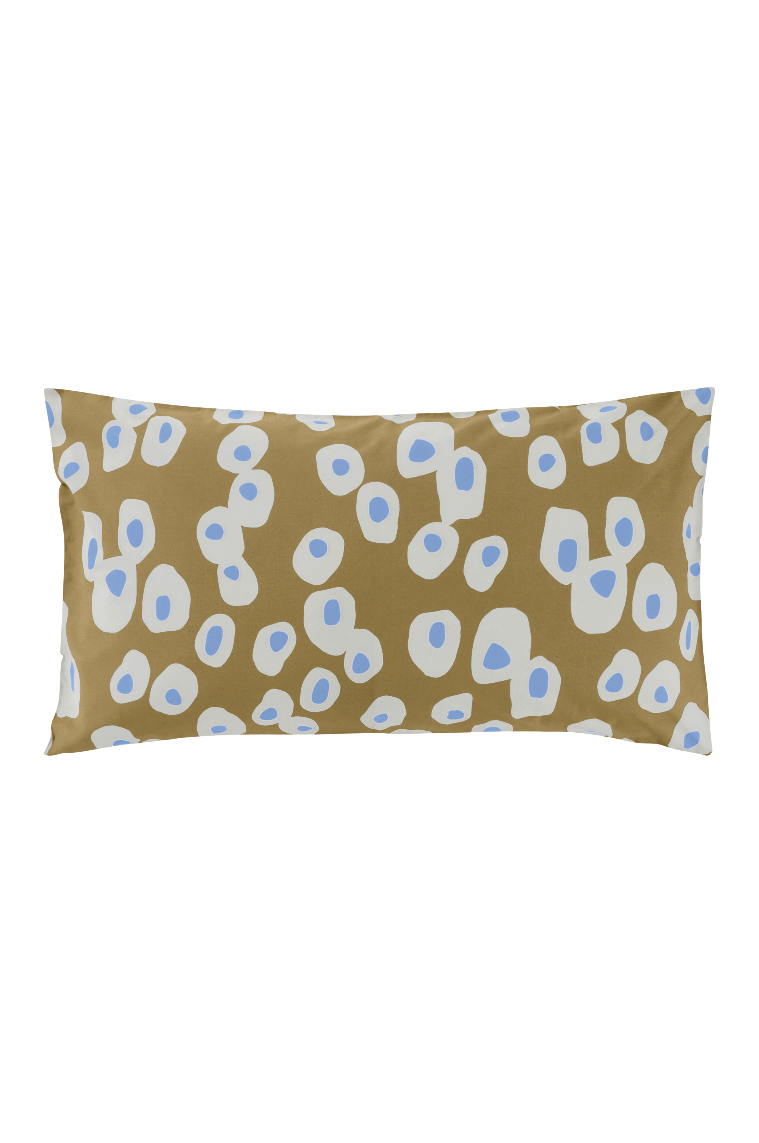 Putevaret OVO, designet av Maria Carlberg, gir en leken vri på interiøret med sitt speilegginspirerte mønster. Putevaret er laget av økologisk bomull og kombinerer retro-sjarm med moderne stil, noe som skaper en livlig og innbydende atmosfære.