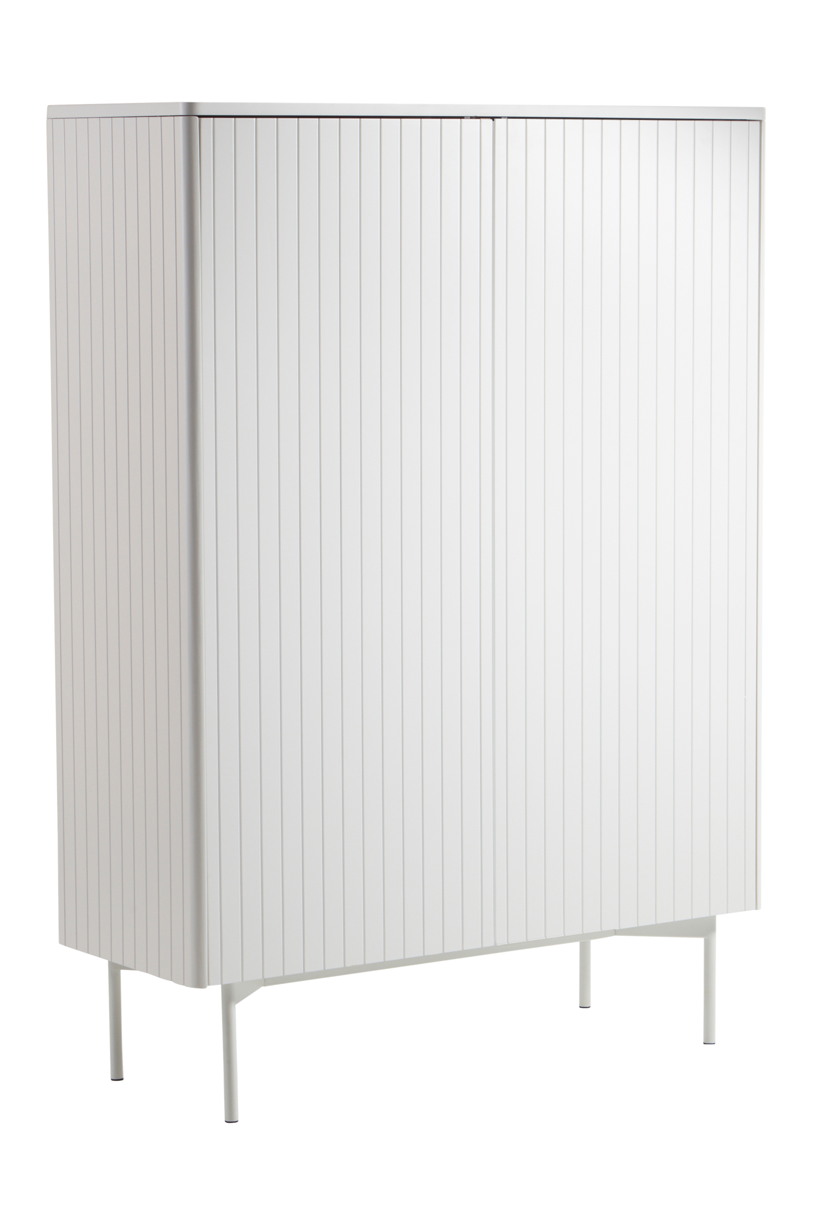 Skap i MDF med askefinér. Skapet har utfreste, vertikale striper som gir en klassisk følelse med retroinnslag. Skapet er stilrent med myke, avrundede hjørner, og dørene åpnes med pushfunksjon, det vil si at du trykker døren mykt innover for å åpne og lukke. Skapet har tre faste hyller. De rette stålbena er pulverlakkerte. PALANZO er et stilig skap som kommer til å gi rommet ditt attityde, samtidig som du får praktisk oppbevaring skjult bak dørene. Veggfeste inkludert. Skruer inngår. Noe montering kreves. Monteringsanvisning medfølger.