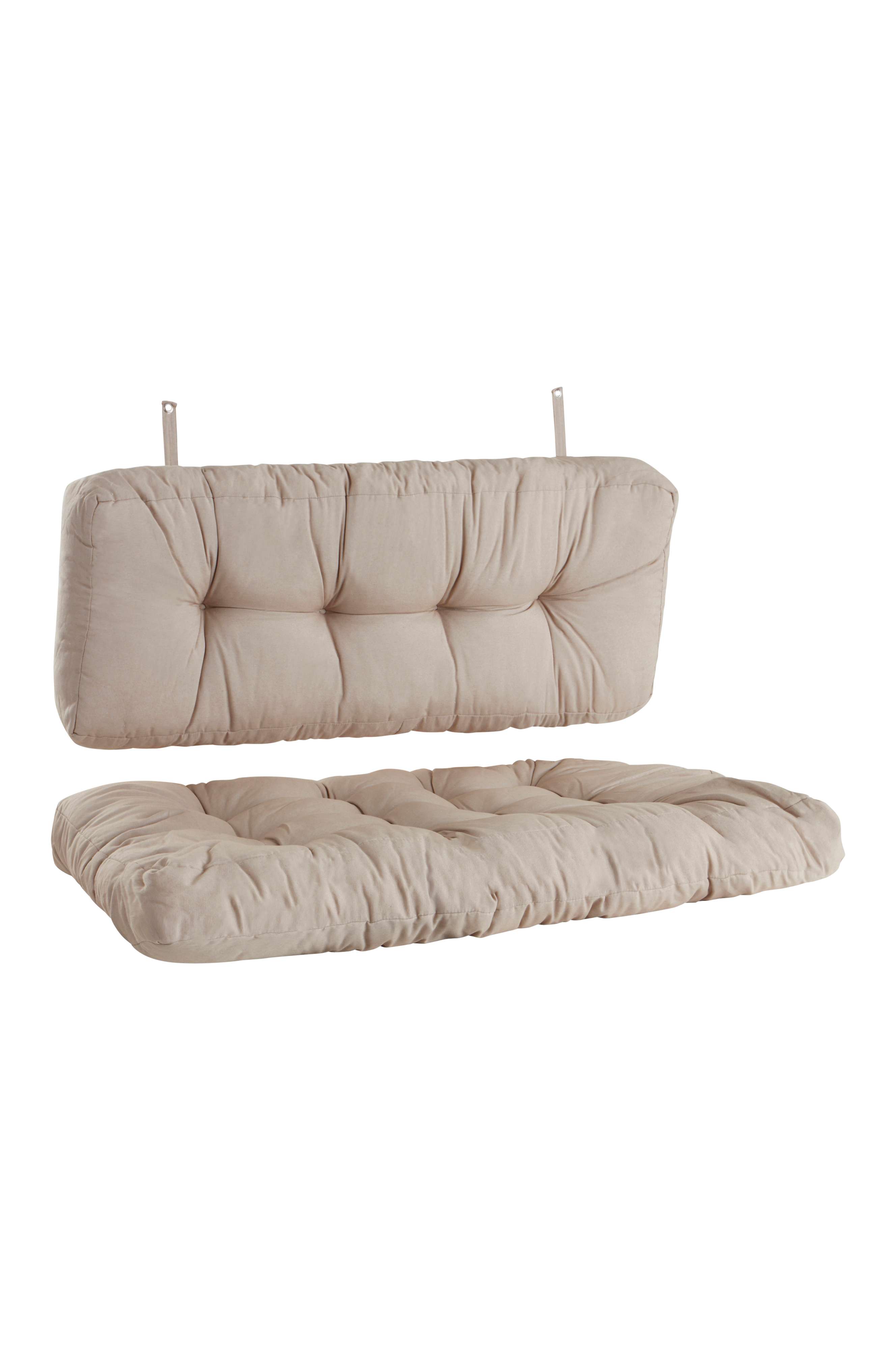 Størrelse: Sittepute 120x80 cm, tykkelse 16 cm. Ryggpute 120x40 cm, tykkelse 20 cm.