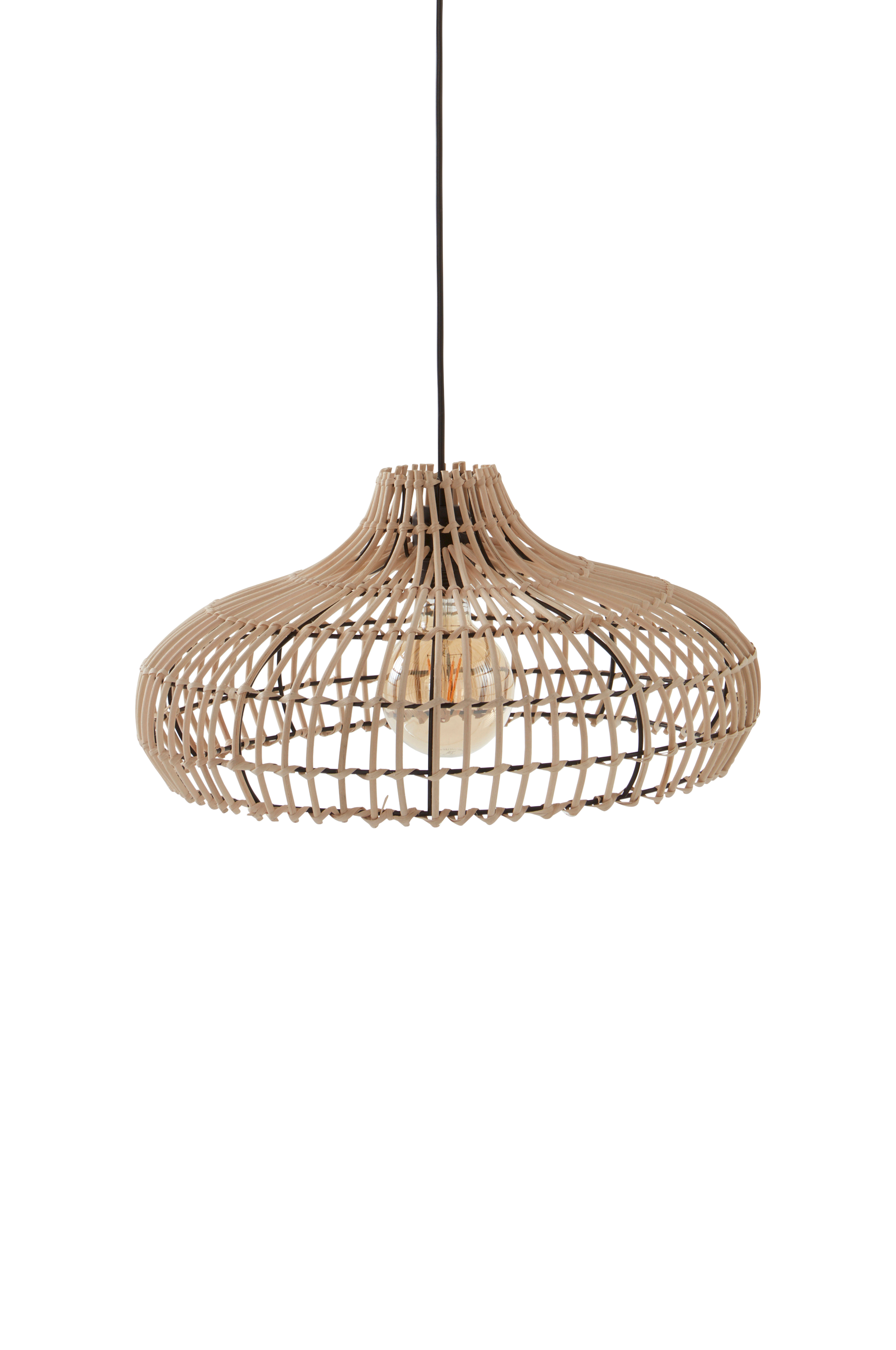 Taklampe av løst flettet, naturlig rotting. Lyskilden vises dekorativt gjennom flettingen. PALU har stamme og takkopp i mattsvart metall med krokoppheng. PALU sprer et koselig lys og en naturlig og litt bohemsk følelse. Svart plastledning, lengden kan justeres slik at lampen henger passe høyt over for eksempel kjøkkenbordet. Lampen er jordet, klasse 1. På grunn av EU-regler kreves en separat takkontakt i visse land. Takkontakten skal være jordet (klasse 1), og kjøpes separat.
