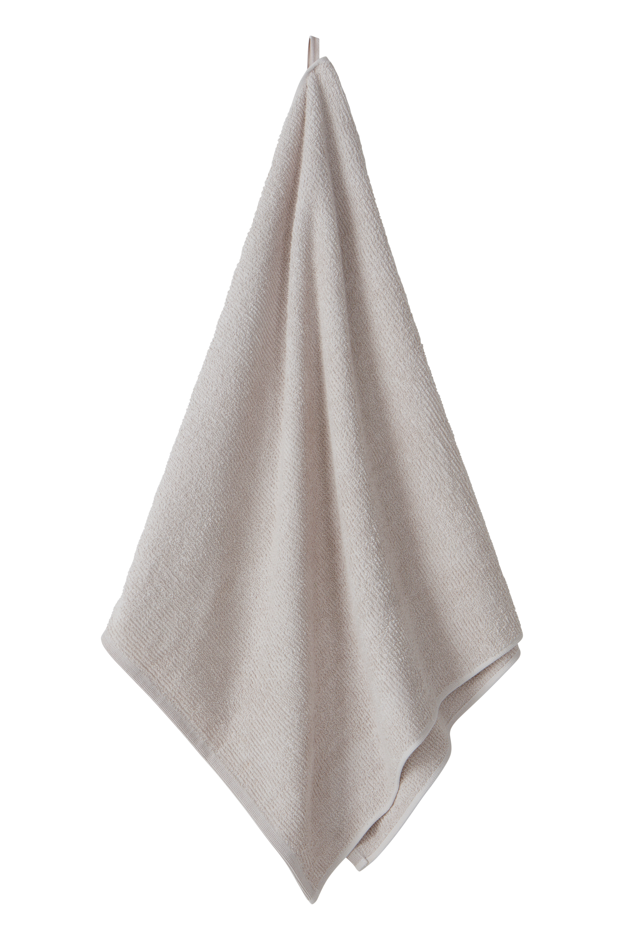 1-pk badehåndkle i herlig bomullsfrotté som er vevd på en spesiell måte slik at den ene siden har ribbet tekstur. Badehåndkleet har en fin, stødig kant. Bomullskvaliteten og måten å veve på gir et luksuriøst og mykt badehåndkle. Frottéen har god absorberingsevne, og blir deiligere jo mer den vaskes. Gramvekt 550 g/m².