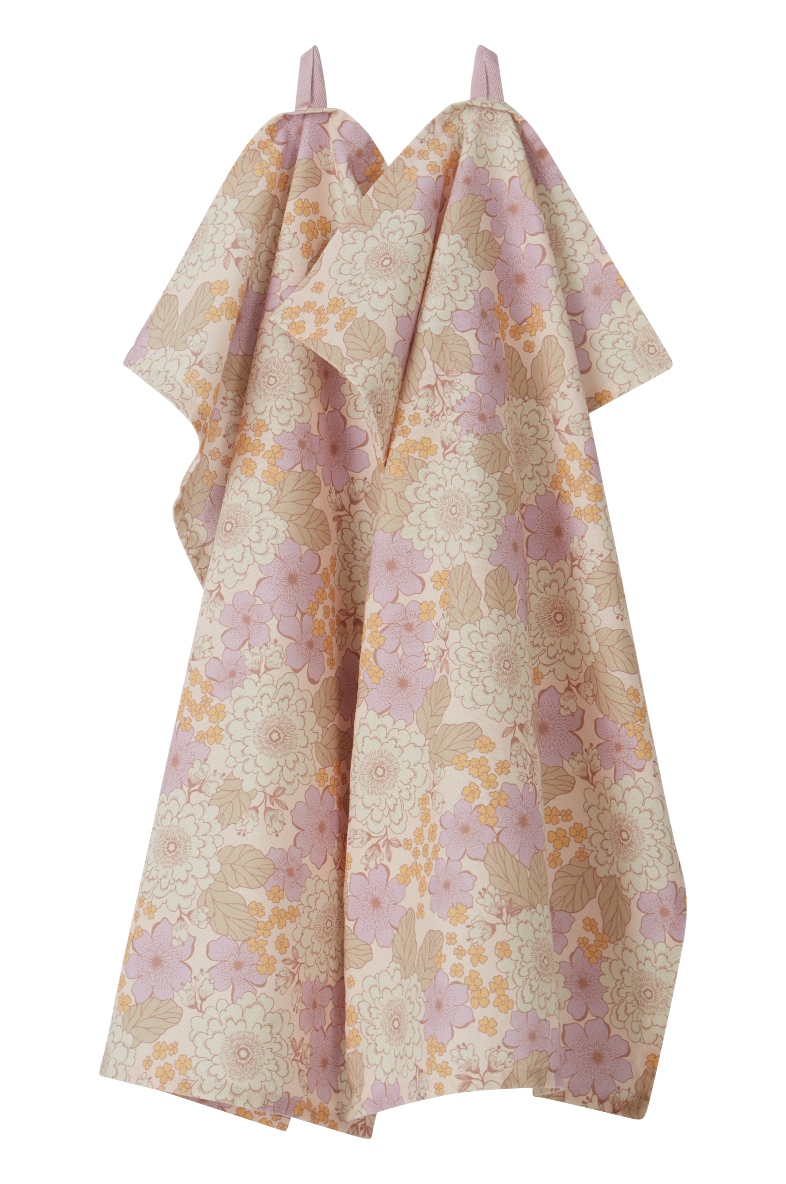 2-pk kjøkkenhåndklær med herlig blomstermønster designet av Maria Carlberg. De trykte blomstene går i litt tåkeaktige pasteller som forsterker den herlige retrofølelsen. Det behagelige bomullsstoffet er plaggvasket for å bli ekstra mykt. Stoffets gramvekt 170 g/m².