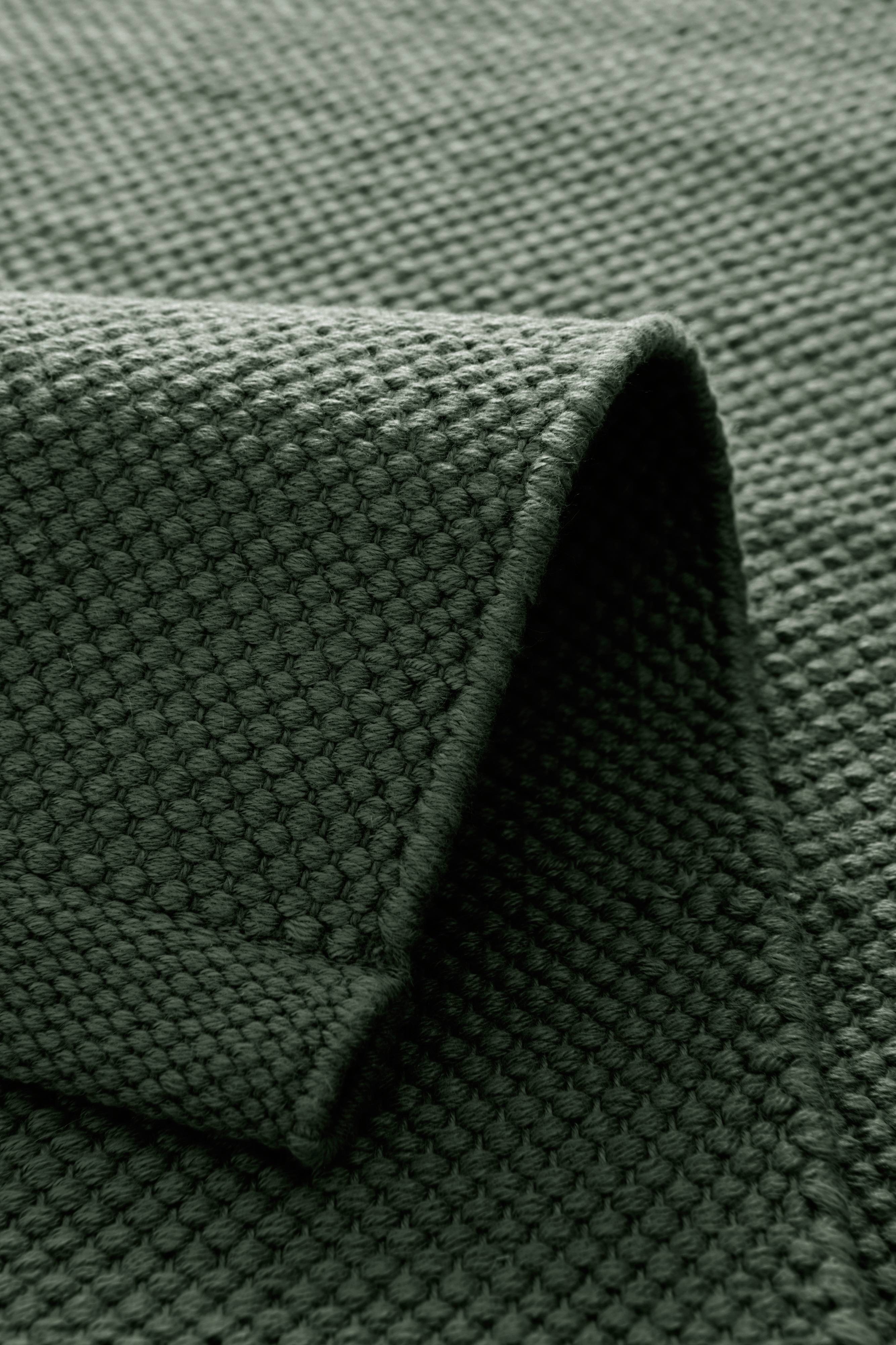Glattvevd teppe av resirkulert polyester, ensfarget i fine nyanser. Dette er en behagelig kvalitet som både føles og ser ut som bomull, men som er laget av resirkulert polyester. Et herlig teppe som du kan bruke både innendørs og utendørs. Teppets fargenyanse kan avvike noe fra bildet. Tykkelse 0,25 cm, tykkelse rundt kantene 0,35 cm.