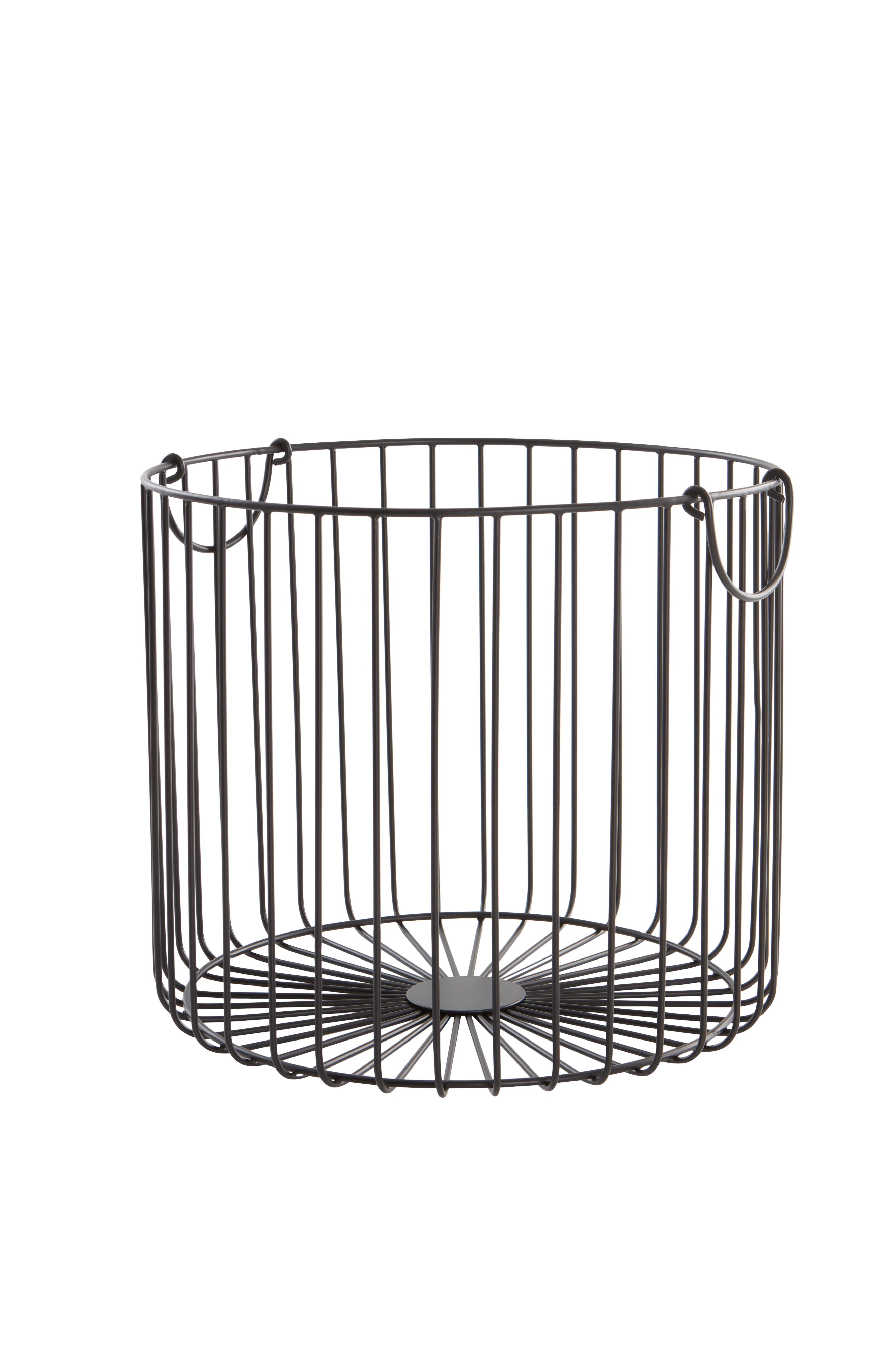 Trådkurv i malt jerntråd med to praktiske håndtak. Trådkurven er håndlaget, noe som gjør hvert eksemplar unikt. Hold orden i hjemmet med sjenerøse, dekorative trådkurver. Like fine i stua som i gangen.