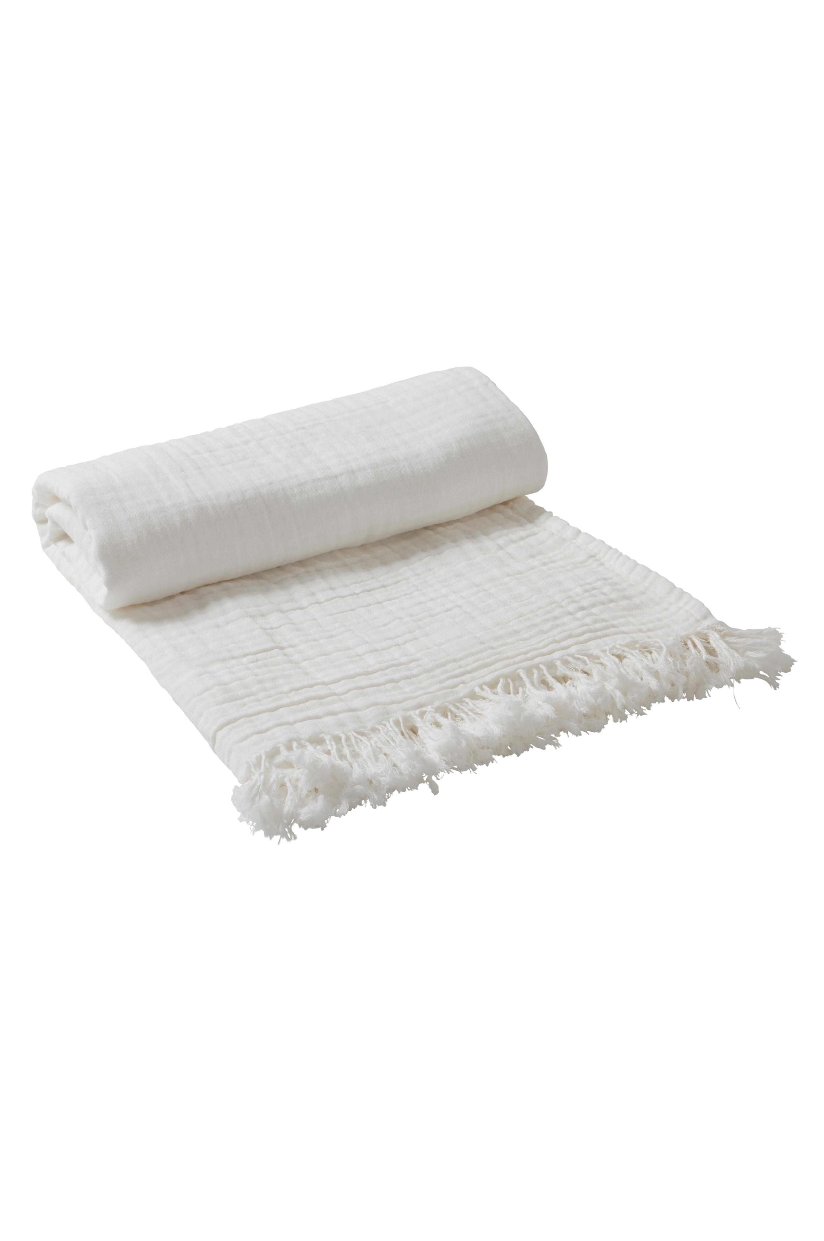 Ensfarget pledd av bomull med myk, litt boblete tekstur som gjør at pleddet føles luftig og svalt. Bomullsstoffet er enzymvasket for å få den deilige og litt slitte følelsen. Frynser som er herlig rufsete langs kortsidene.