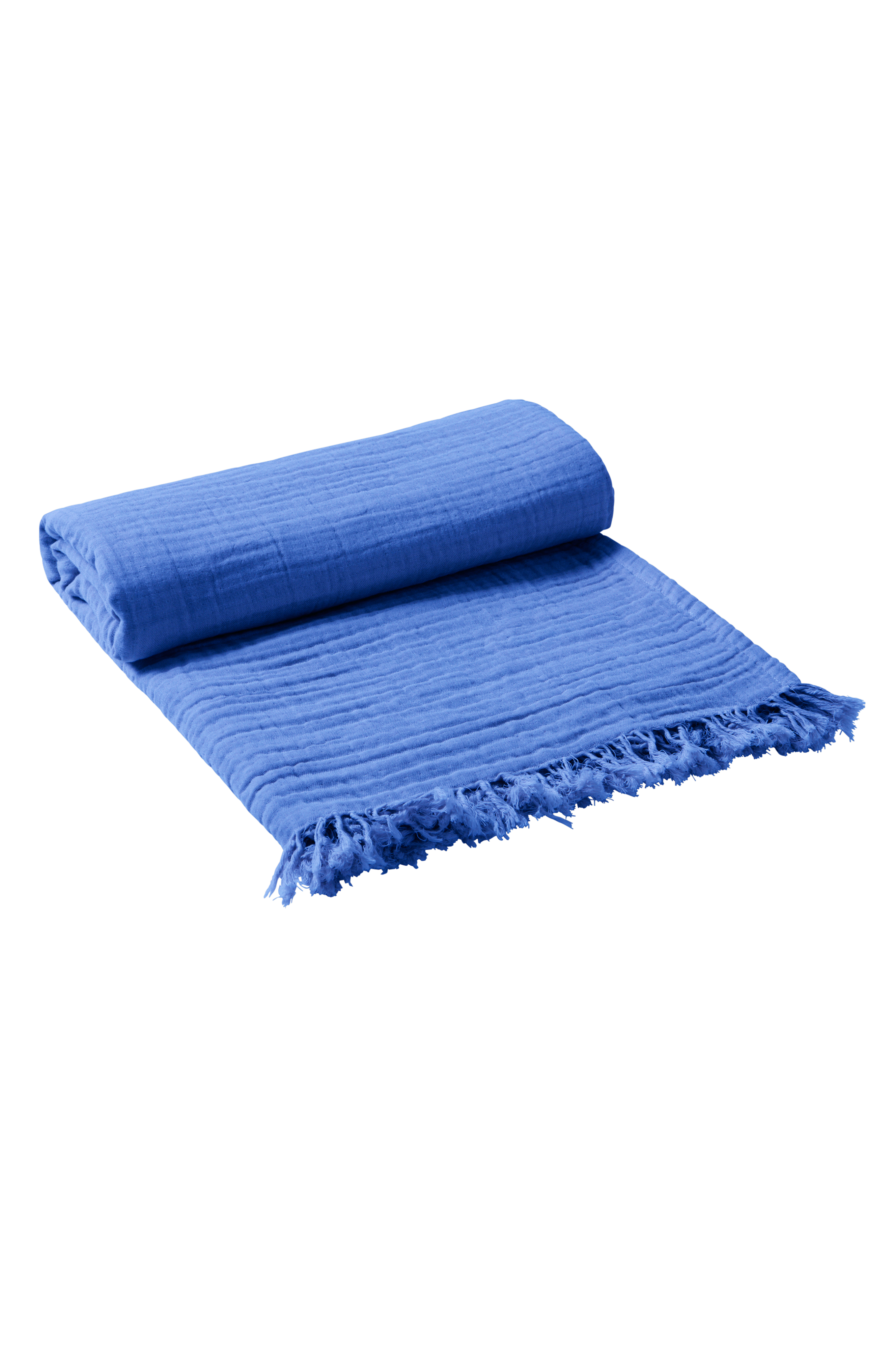 Ensfarget pledd av bomull med myk, litt boblete tekstur som gjør at pleddet føles luftig og svalt. Bomullsstoffet er enzymvasket for å få den deilige og litt slitte følelsen. Frynser som er herlig rufsete langs kortsidene.
