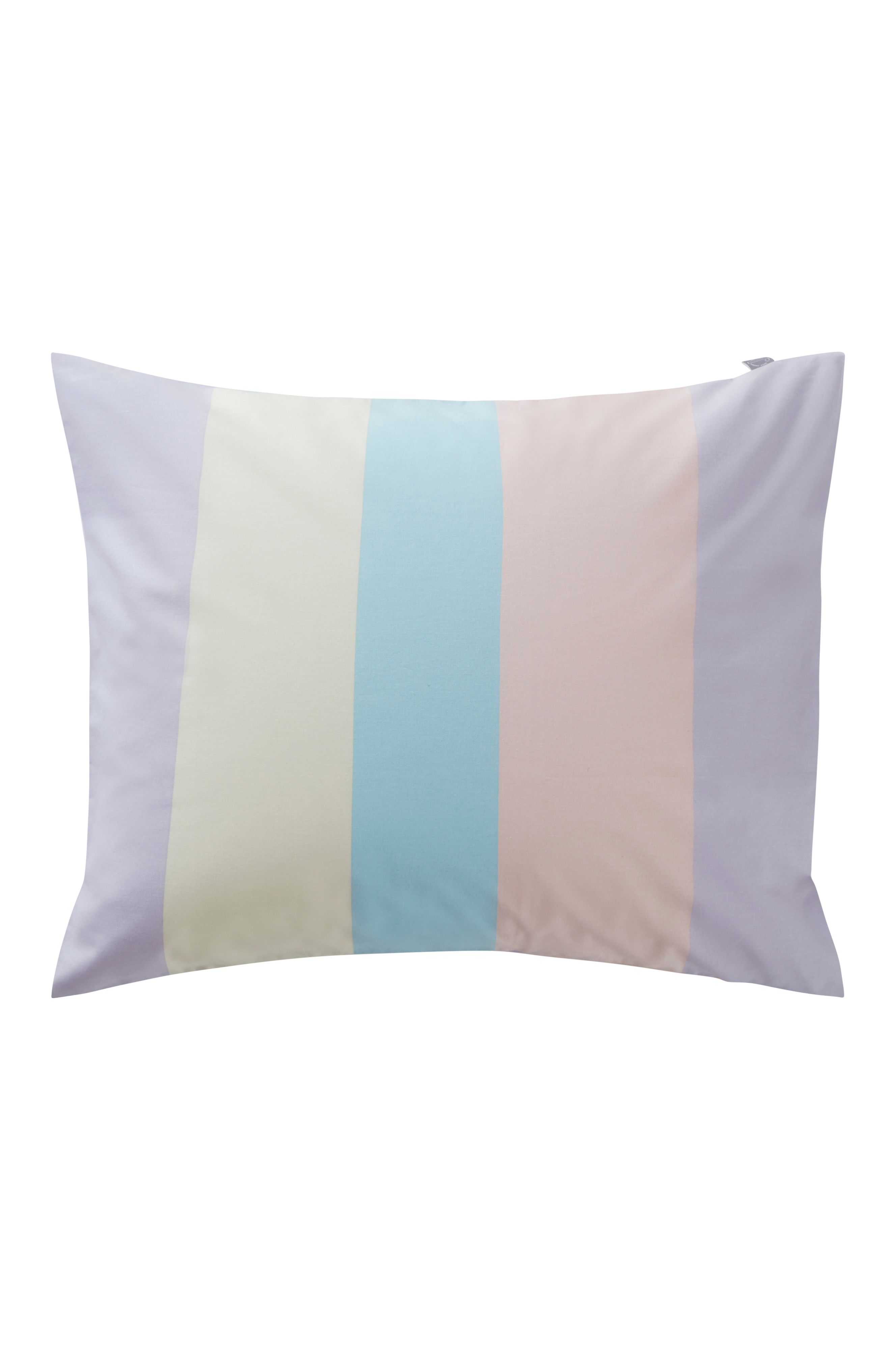 1-pk putevar av myk, stripete bomull. Bomull er deilig og svalt å sove i, og stoffet er i tillegg behandlet for å bli behagelig mykt. Stripene er i lekre, iskremaktige pasteller og uregelmessige. De forskjellige delene i sengeserien kan derfor ha litt ulike striper. Trådtetthet på 144 tc. (Trådtettheten forteller om antallet tråder, thread counts, pr. kvadrattomme i et stoff. Jo høyere trådtetthet, desto høyere kvalitet.)