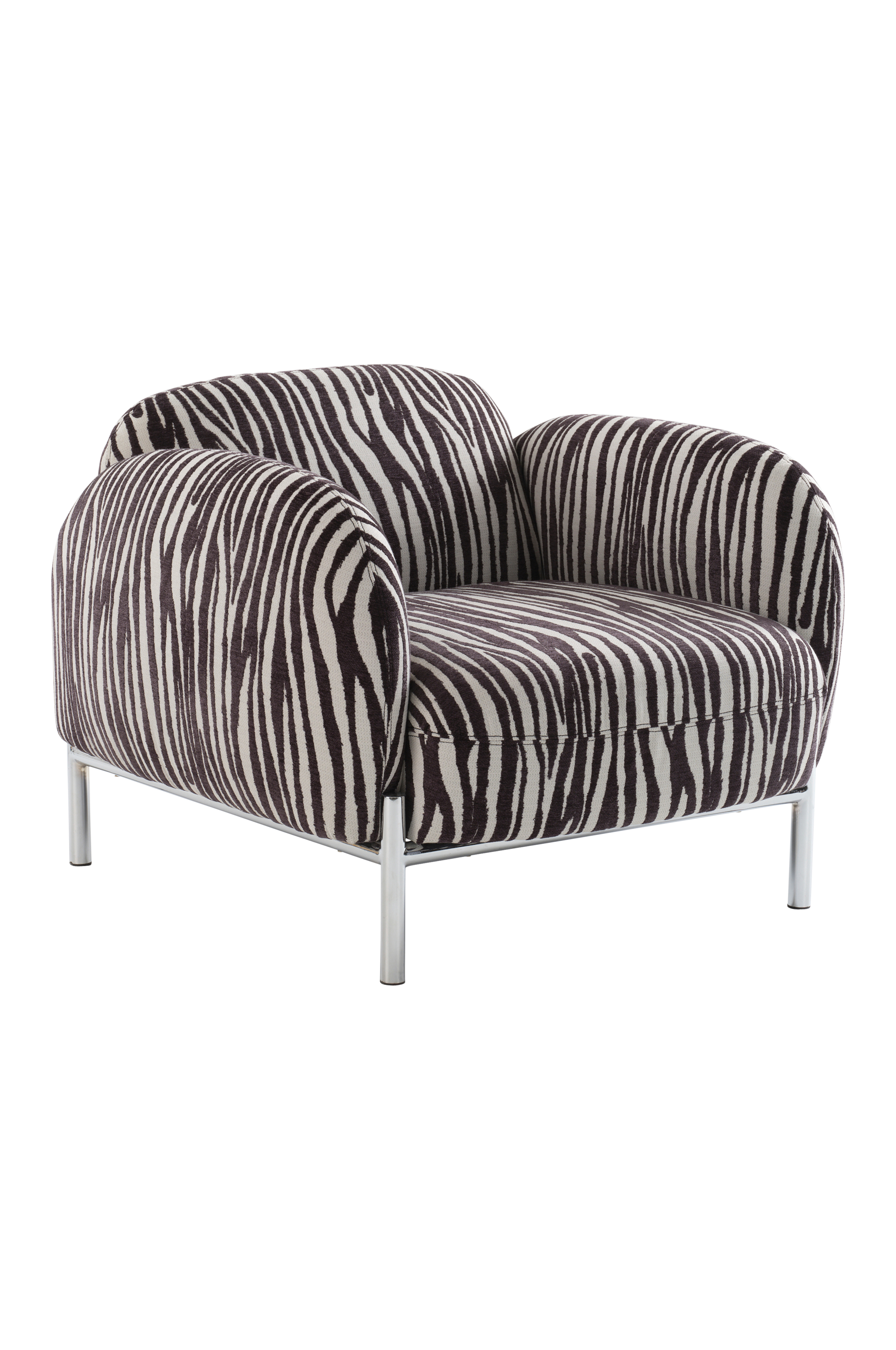 Lenestolen RAMON har et slående sebramønster på trekket og ben i krom, noe som gjør den ideell for trendy interiører. Det unike mønsteret og den moderne designen gjør den til et unikt møbel som kombinerer komfort med elegant stil, noe som gjør den til et statement i ethvert rom.