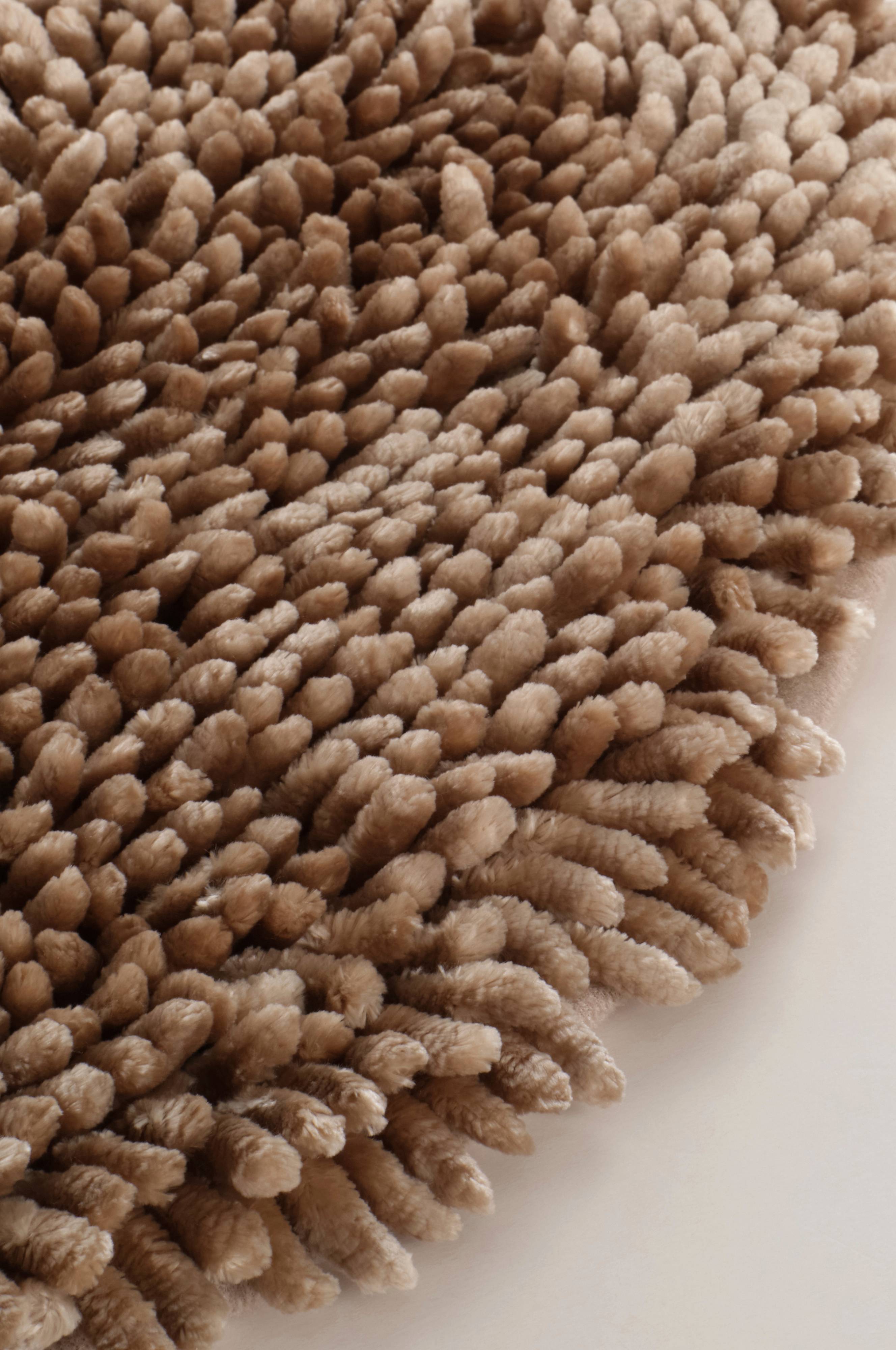 Badematten RAQUEL gir en luksuriøs badeopplevelse med sin runde form og lange luv. Den er myk og behagelig under føttene og har en sklisikker bakside som gir trygghet på badet.