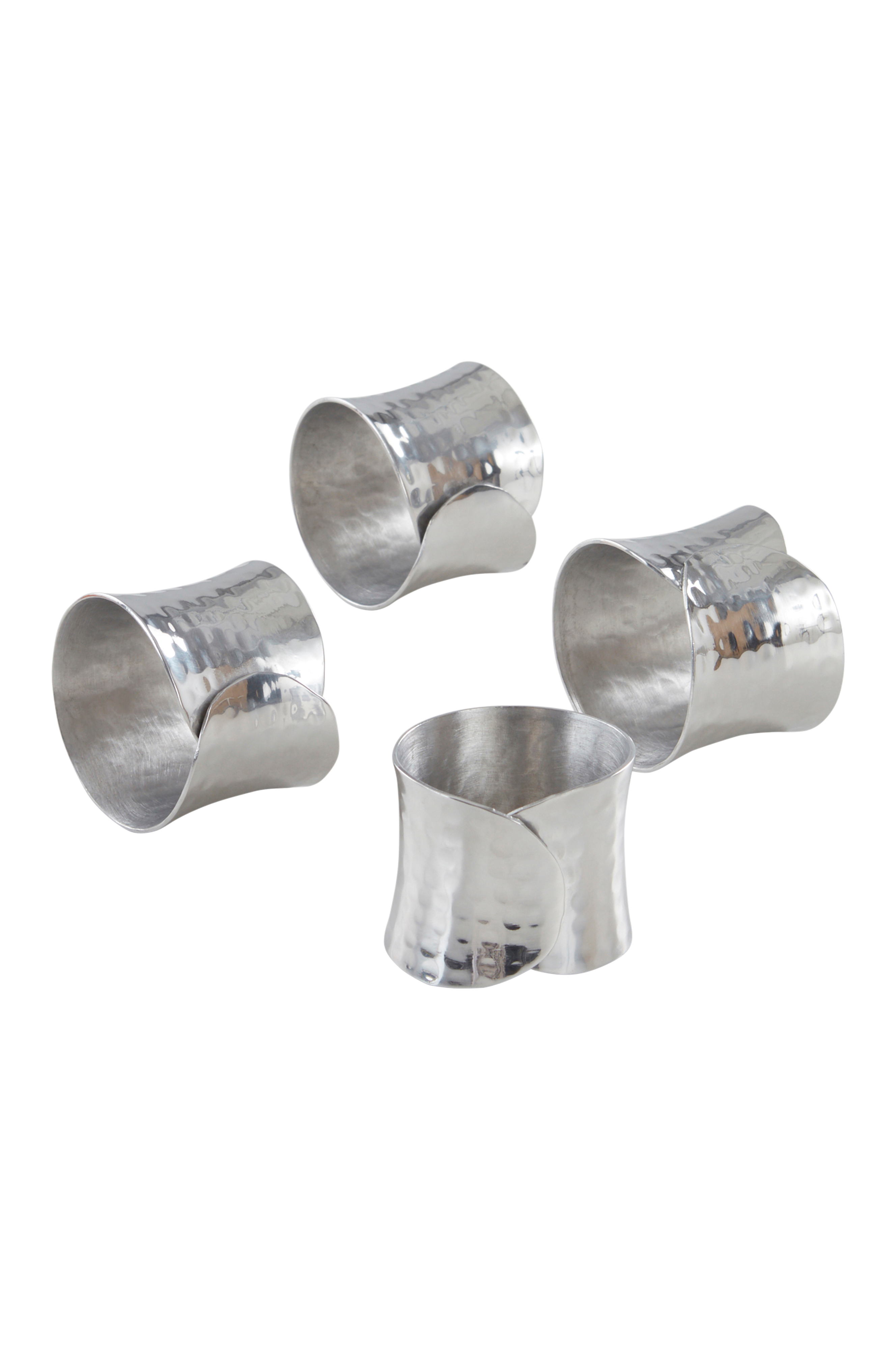 4-pk med serviettringer av aluminium med hamret mønster og polert finish.