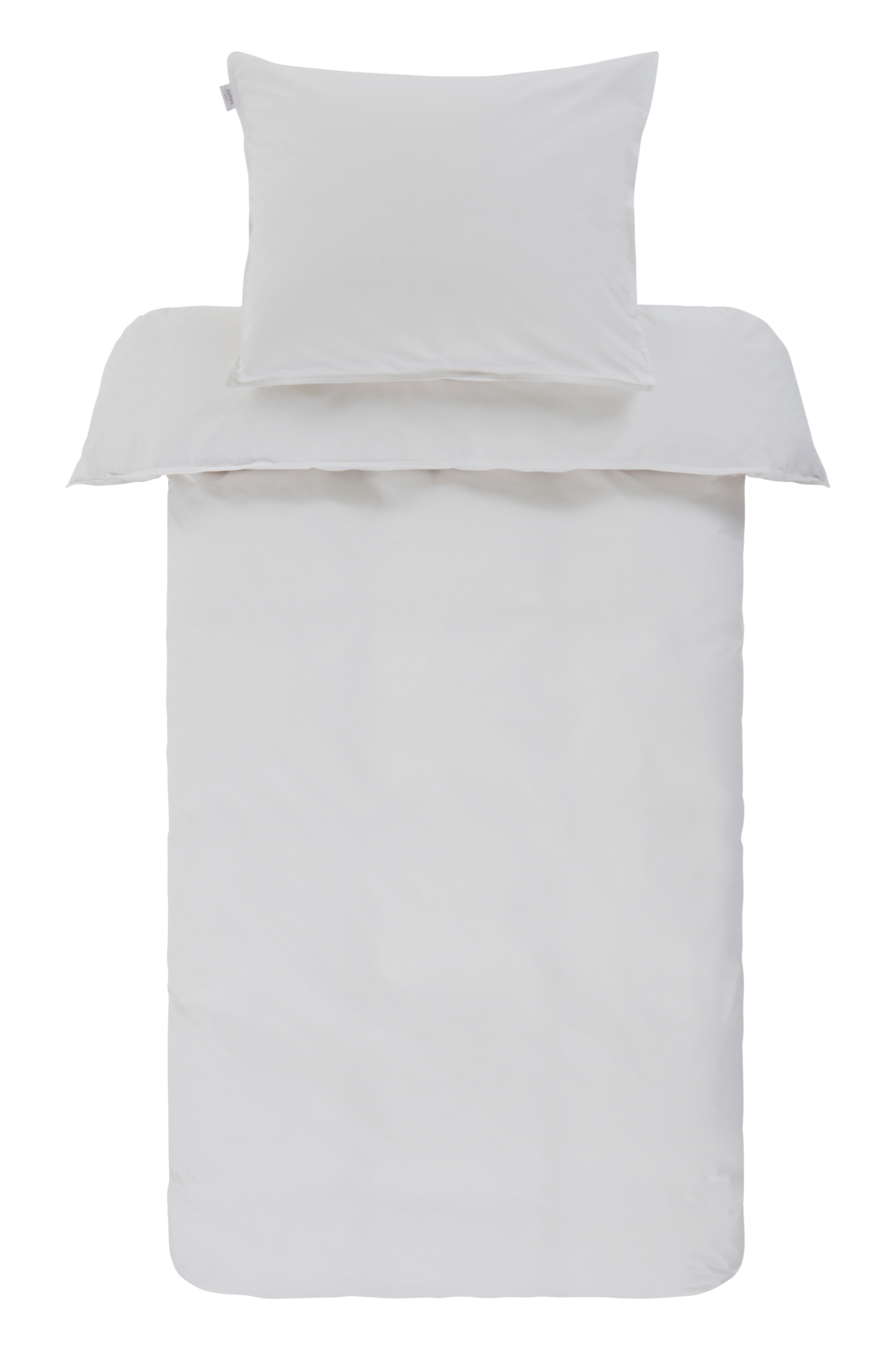Ensfarget sengesett i to deler, et dynetrekk og et putevar av myk, økologisk bomullspercale. Percale er et ekstra mykt og deilig stoff som veves med tynne, fine bomullstråder. Sengetøyet i serien REMY har dobbeltsøm rundt. Dynetrekket lukkes med små trykknapper. Åpning øverst i hjørnene på dynetrekket. Det gjør det lettere å tre dynetrekket over dynen. Trådtetthet på 200 tc. (Trådtettheten forteller om antallet tråder, thread counts, pr. kvadrattomme i et stoff. Jo høyere trådtetthet, desto høyere kvalitet.)