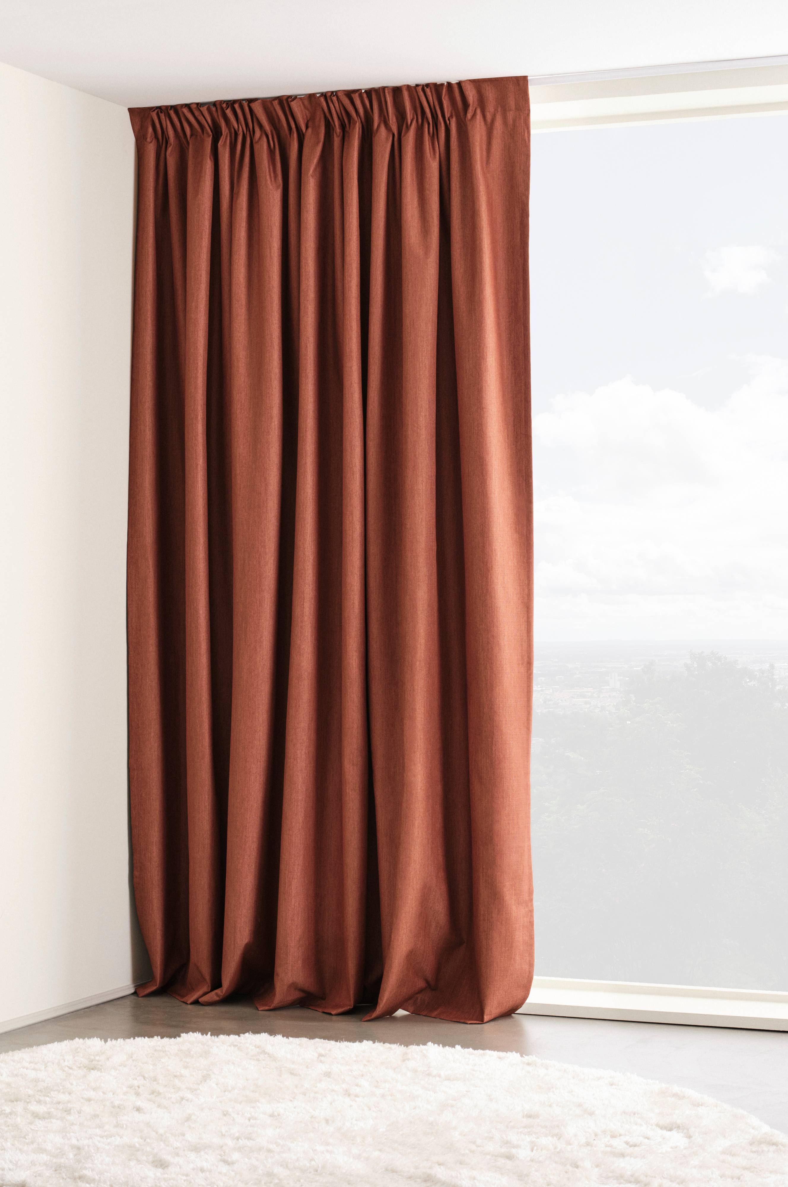 Gardinlengde i polyester med påsydd multifunksjonsbånd og mørkleggende bakside. Steng lyset ute når du vil. Mørkleggingsgardinen har tekstur, matt overflate og samtidig glans i trådene, noe som skaper en unik følelse i rommet. Multifunksjonsbåndet gir deg muligheten til å variere opphengingen med rynkebånd, skjult hempe og foldebånd.