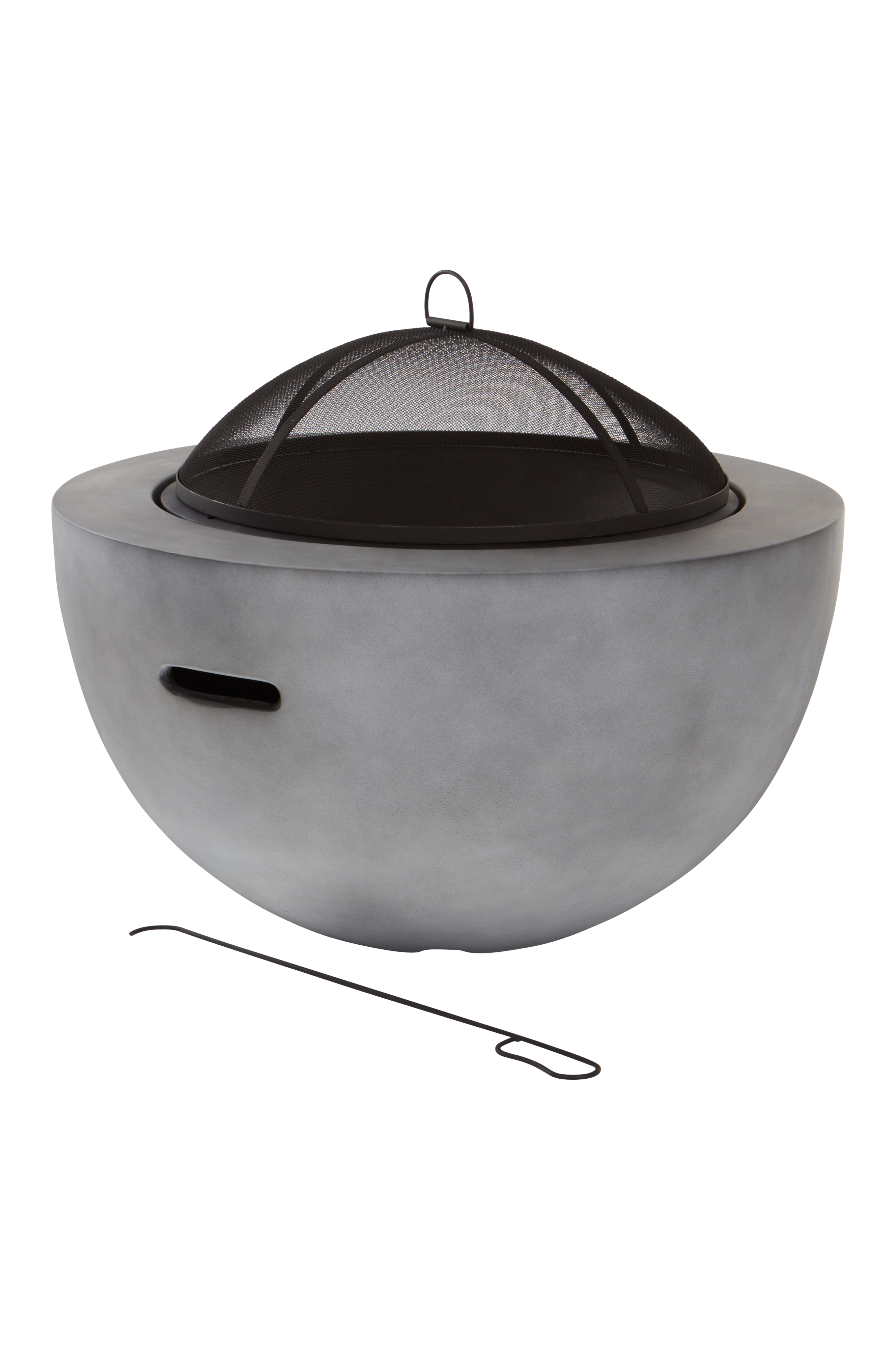 Ildsted av magnesiumoksid, et ildfast stoff som tåler høye temperaturer. Den runde modellen står stabilt på bakken, og har to åpne grep på to sider slik at det kan flyttes rundt i hagen der du ønsker et koselig ildsted. Ildstedet er beregnet for fyring med tørr ved som gir et hyggelig bål. Det er ikke beregnet for matlaging, men du kan grille med lange grillspyd når flammene blir til glør. Selve flammekurven, gnistvernet og kroken som tilhører er av pulverlakkert stål. Ildstedet er for utendørs bruk. Vær forberedt på at det kan blåse gnister og aske fra pannen. Noe montering kreves.