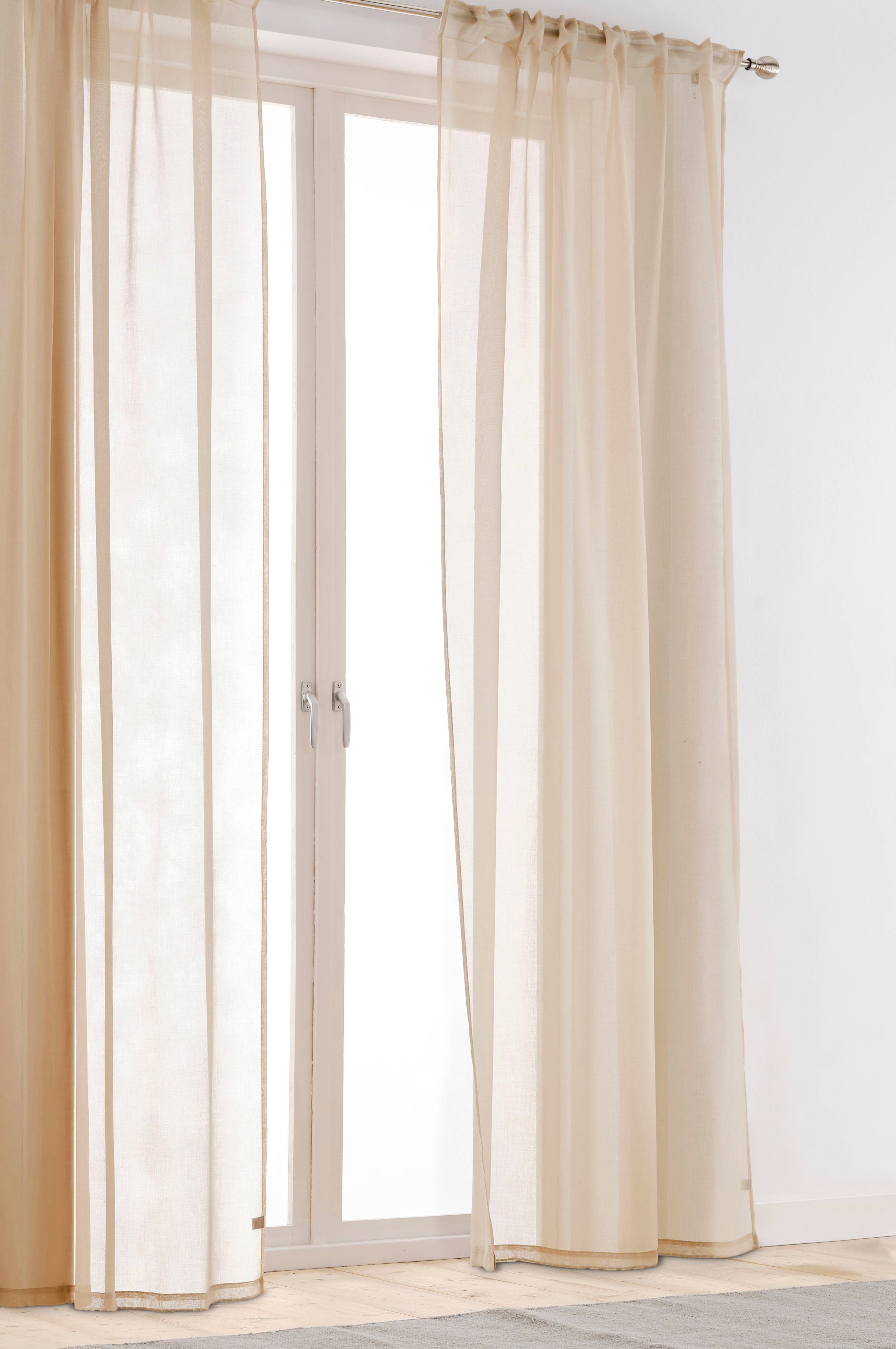 Tynne lengder i luftig voile som slipper lyset inn gjennom vinduet ditt. Lengdene har et påsydd multifunksjonsbånd for ulike opphengsmuligheter.