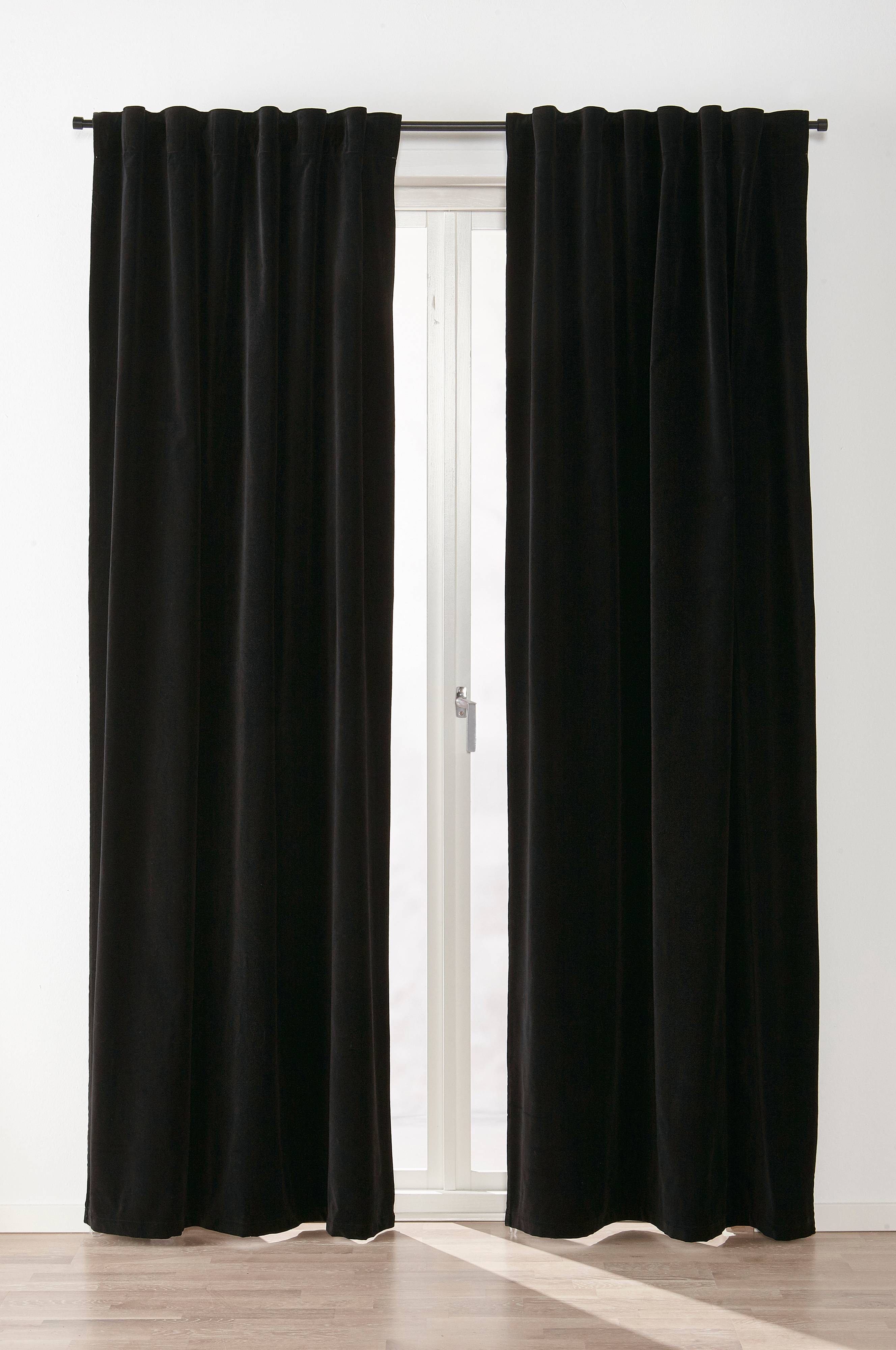 2-pk gardinlengder i ensfarget bomullsfløyel med påsydd multifunksjonsbånd. Multifunksjonell gardin som gir deg mulighet til to ulike oppheng. Alt for at gardinen skal passe akkurat ditt hjem og din stil. Kan henges opp med skjulte hemper eller med fingerkroker for rynkebånd.