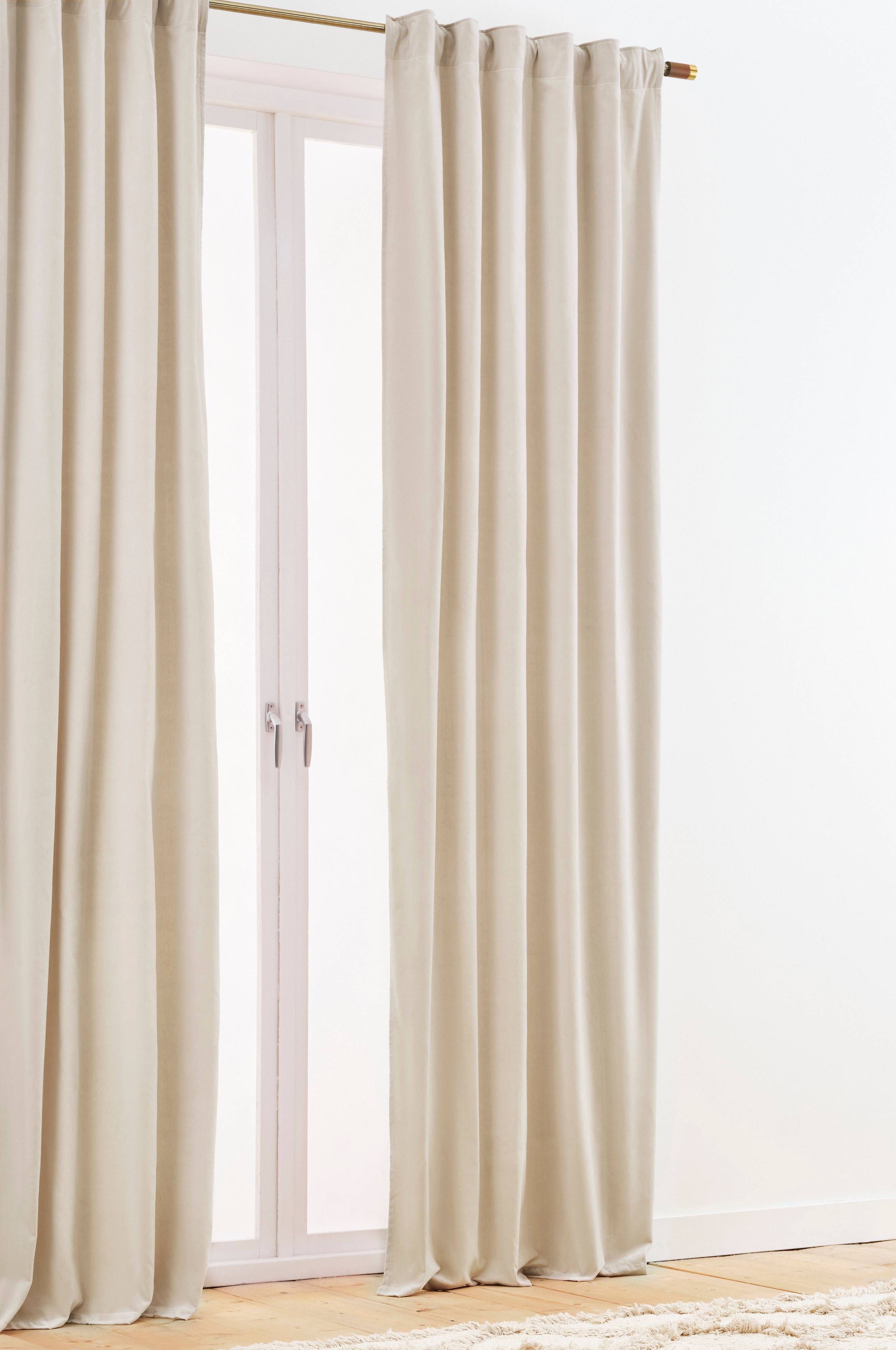 2-pk gardinlengder i ensfarget bomullsfløyel med påsydd multifunksjonsbånd. Multifunksjonell gardin som gir deg mulighet til to ulike oppheng. Alt for at gardinen skal passe akkurat ditt hjem og din stil. Kan henges opp med skjulte hemper eller med fingerkroker for rynkebånd.