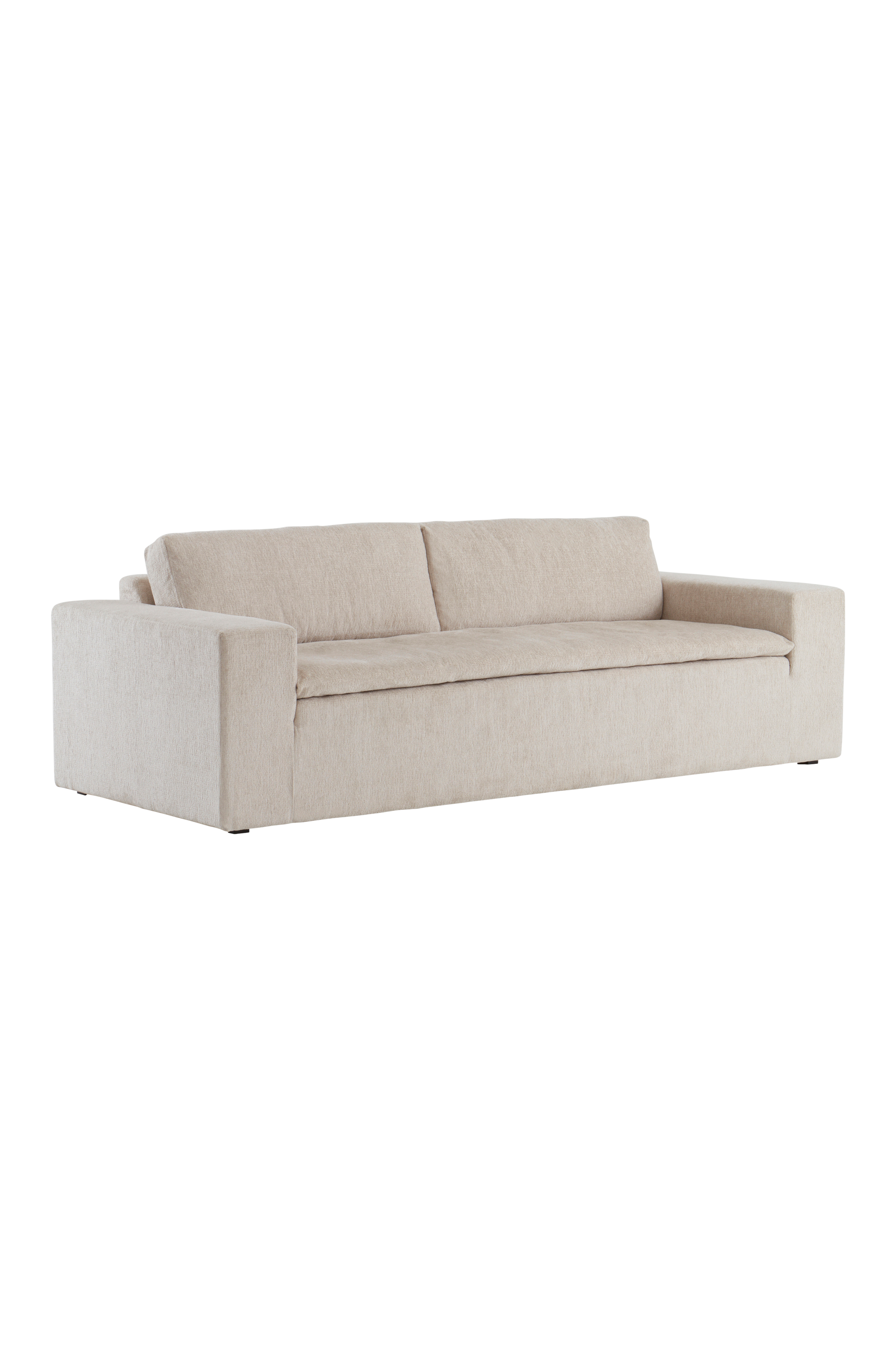 Romslig 3-seter sofa med stabil stamme av FSC-sertifisert furu og kryssfiner. Sofaen er herlig å sitte i takket være klassisk oppbygging med sikksakkfjæring og behagelig polstring. Designen er både attraktiv og avslappet med mykt, innbydende trekk med deilig boucléfølelse. Stoffet skimrer i ulike nyanser av beige, og er svært solid med Martindale på 33 000. Den mykt fylte toppen på sittedelen er fast, og fjærfyllet gir ekstra komfort. De to løse ryggputene er vendbare og har avtagbart trekk, glidelås i nederkant. Trekket ellers er ikke avtagbart. SARBONNE har god sittekomfort og lave ben av mørkbeiset bjørk. Det er en herlig, stilren sofa som du gjerne slapper av i hele dagen.