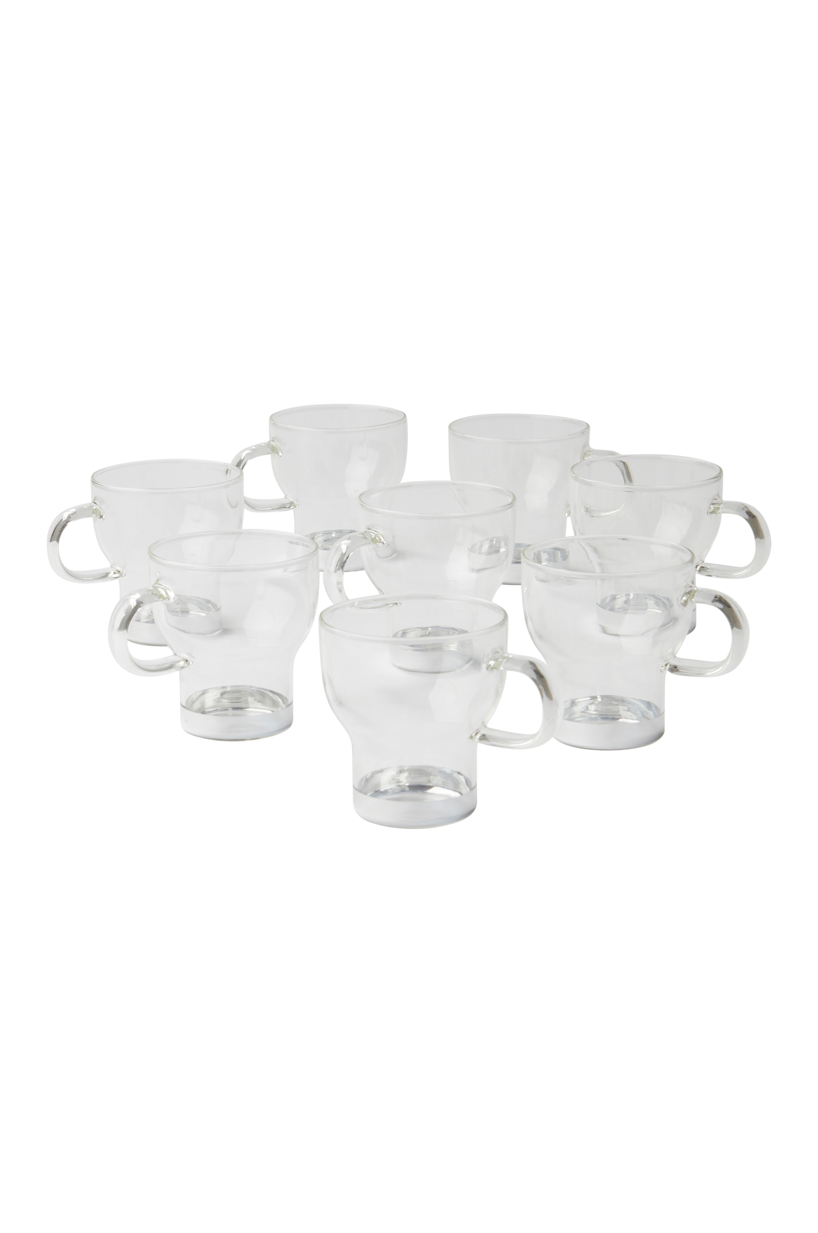 8-pk kopper av glass. De fint formede koppene er i klart glass og har hank, perfekt når du vil drikke varm drikke av glass.