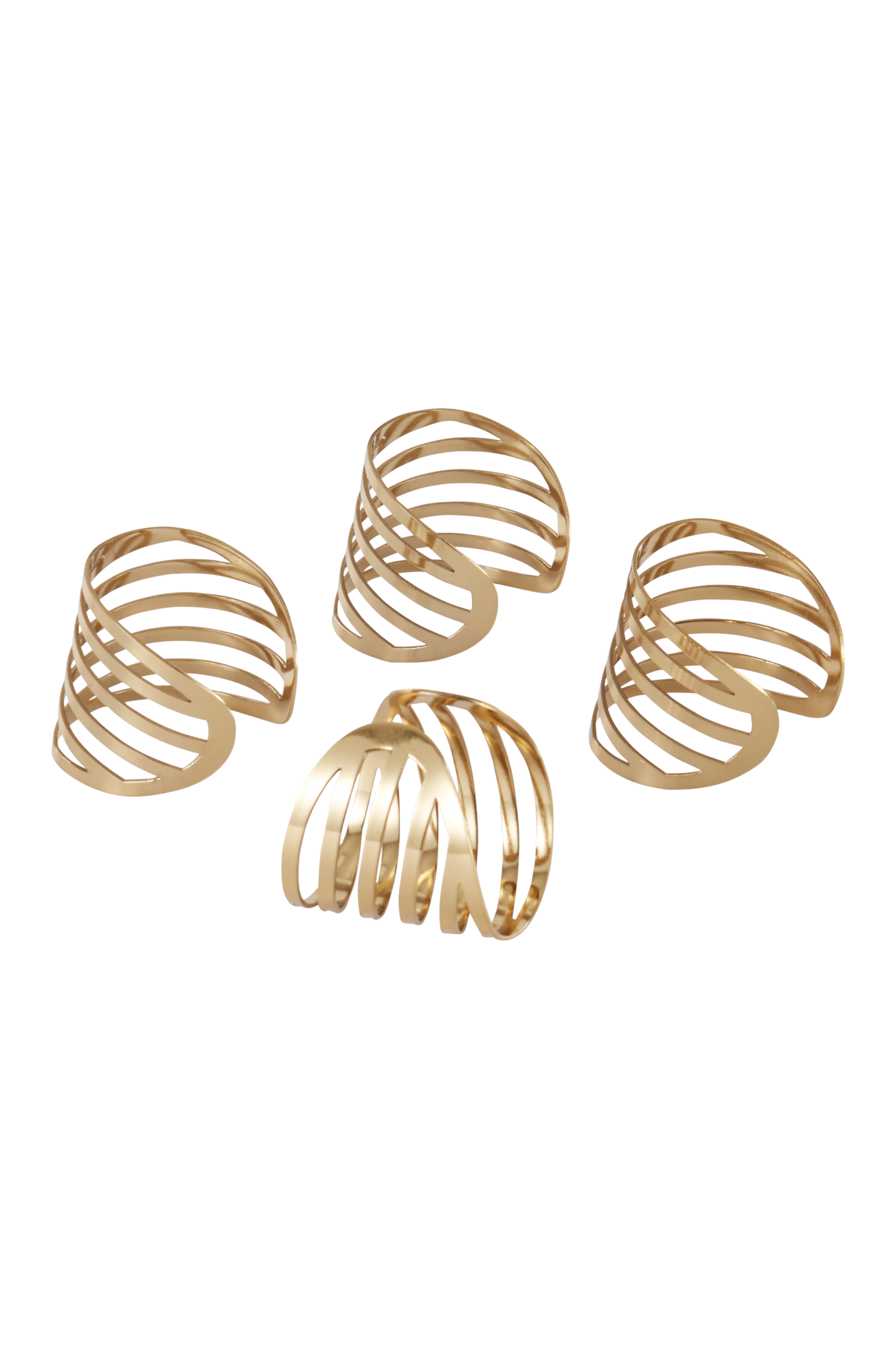 4-pk serviettringer i rustfritt stål med messingfarge. Serviettringene er elegante i formen, og sammen med tekstilservietter får du en stilren og klassisk oppdekking.