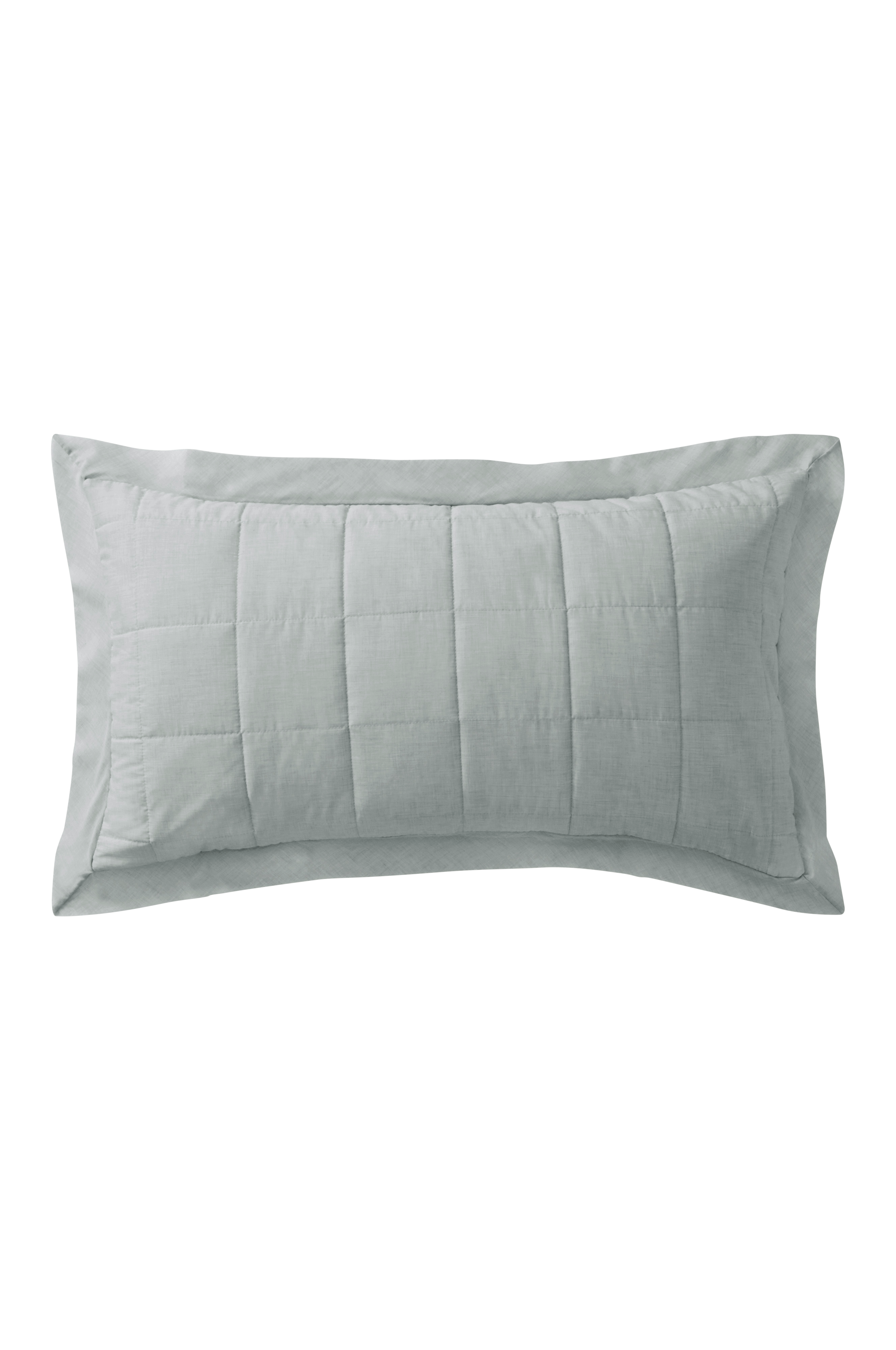 1-pk putetrekk av bomull og polyester med garnfarget utseende som gir en myk og hjemmekoselig følelse. Putetrekket er rutequiltet med smidig fyll av polyester. En tynn, rå kant rundt gir en spesiell innramming. Glidelås nederst.