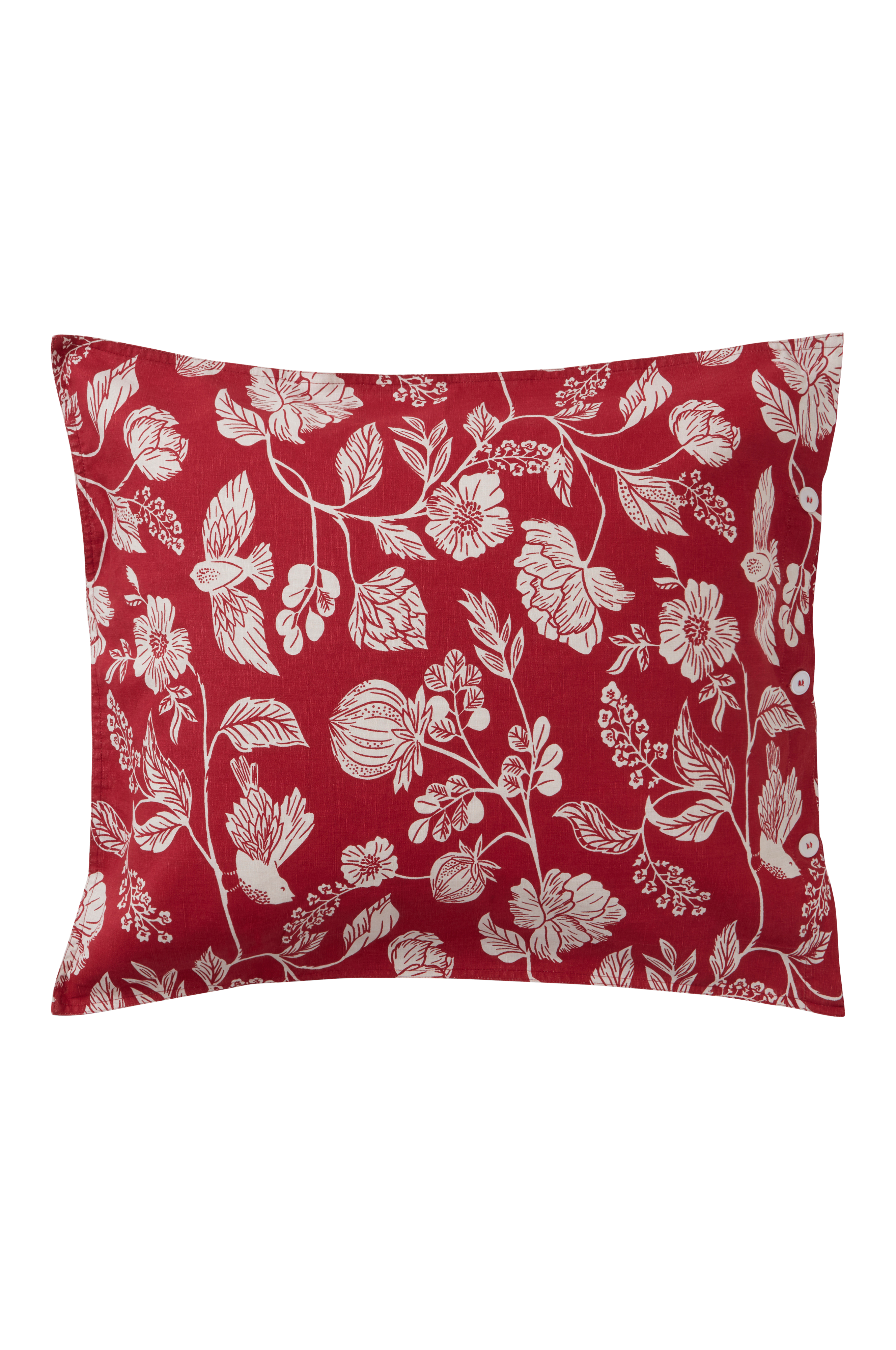 Putetrekk i en behagelig og tettvevd kvalitet av lin og bomull som er enzymvasket for en ekstra myk følelse. Bomull og lin er en perfekt blanding som gir komfortabelt sengetøy med fordelene fra både lin og bomull. Putetrekket har et trykt mønster av blomster og blader på en ensfarget bakgrunn. Det velarbeidede putetrekket har doble sømmer rundt hele trekket for en luksuriøs følelse og plastknapper for lukking.