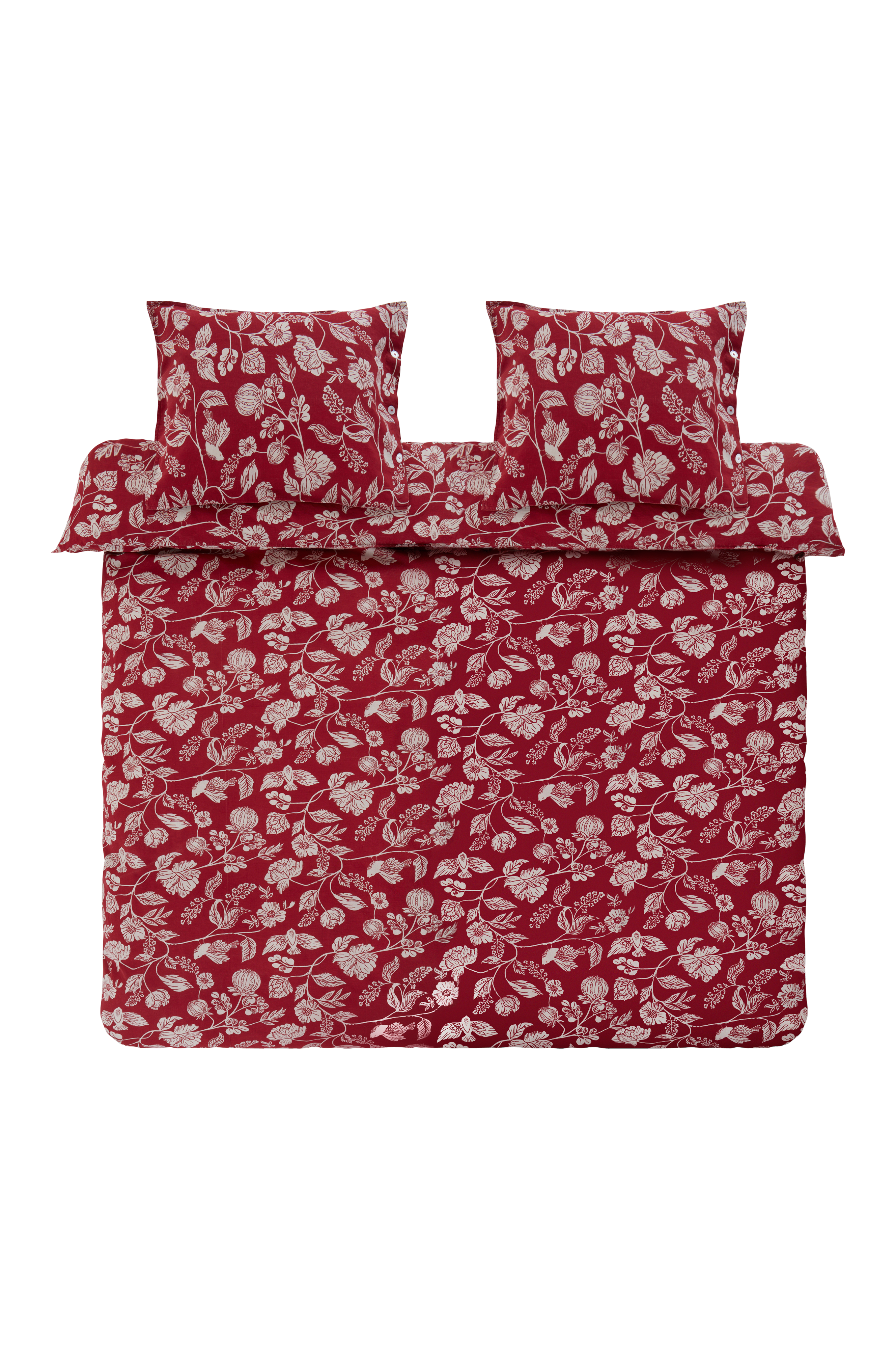 Sengesett i 3 deler i herlig og tettvevd kvalitet av lin og bomull som er enzymvasket for å få en ekstra myk følelse. Bomull og lin er en perfekt blanding som gir behagelig sengetøy med både linets og bomullens fordeler. Sengesettet har trykt mønster av blomster og blad på ensfarget bunn. Det forseggjorte settet har dobbeltsøm rundt både dynetrekk og putevar, det gir en luksuriøs følelse. Åpning øverst i hjørnene på dynetrekket. Det gjør det lettere å tre dynetrekket over dynen. Plastknapper for lukking på både putevar og dynetrekk.