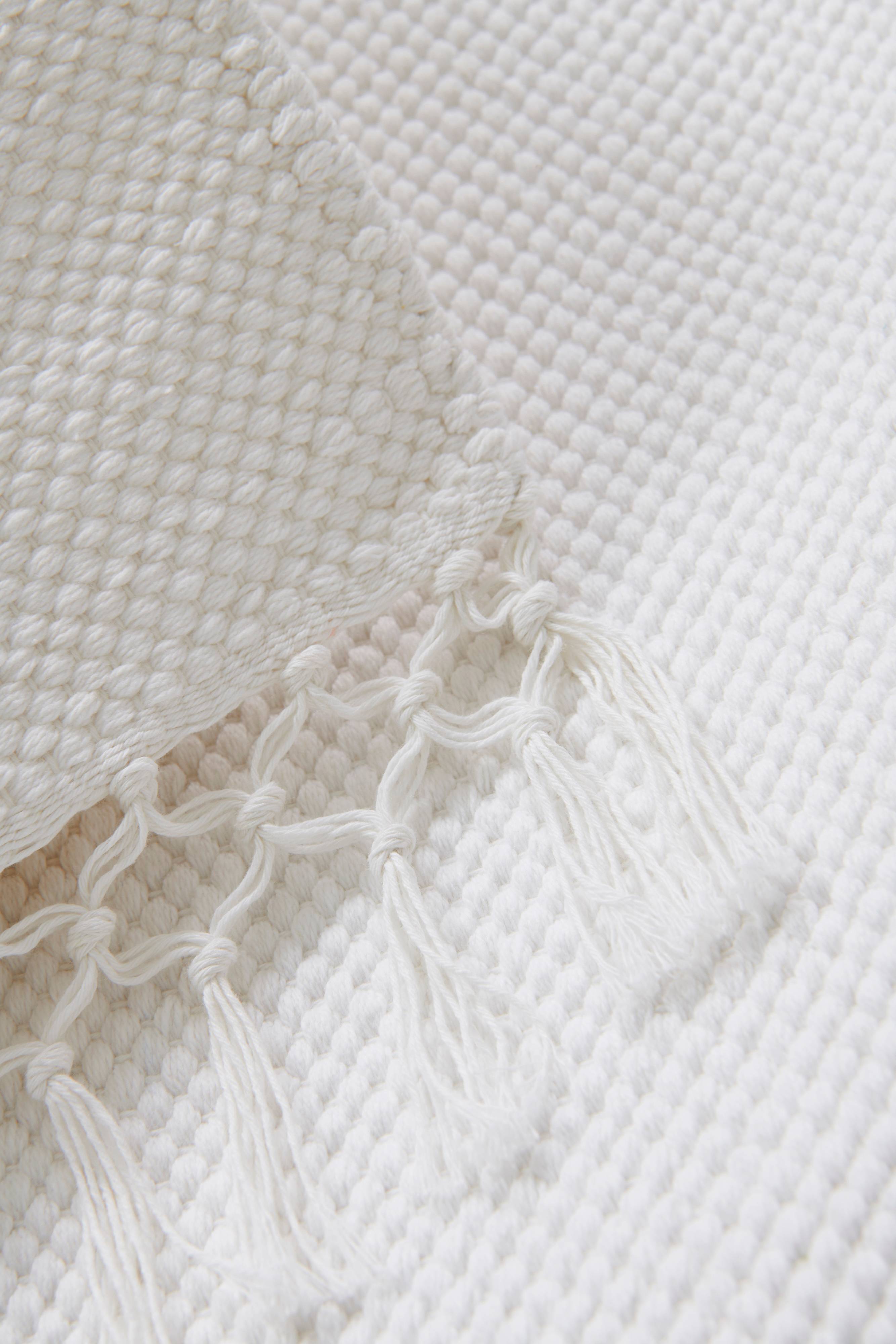 Bomullsmatte av høy kvalitet, den største størrelsen passer godt på gulvet uten behov for en sklisikre matte under. Farge ren hvit. Selvfølgelig krever den hvite fargen hyppig…
