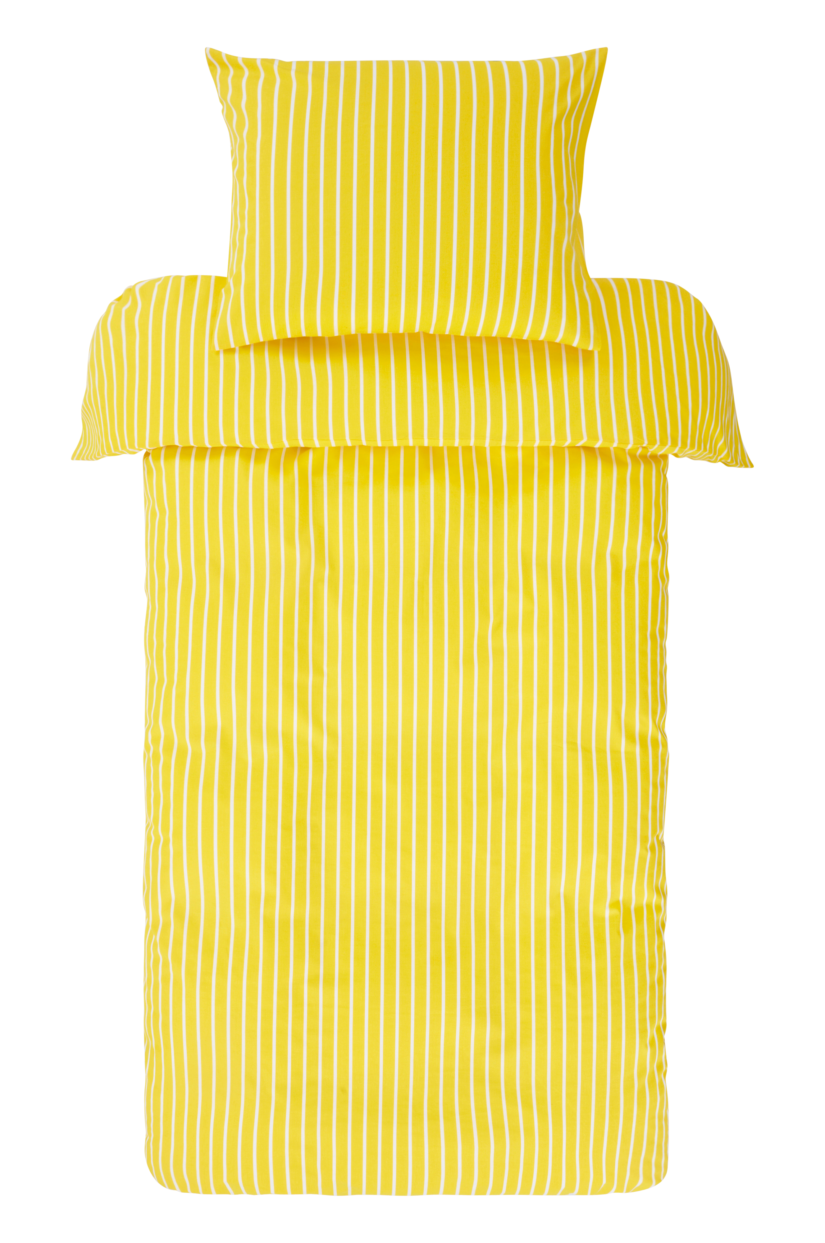 SIMA-sengesett laget av økologisk bomull. Trykte striper i friske farger. Praktiske håndtakshull i dynen gjør det enkelt. Gjør soverommet ditt til et avslappende sted.