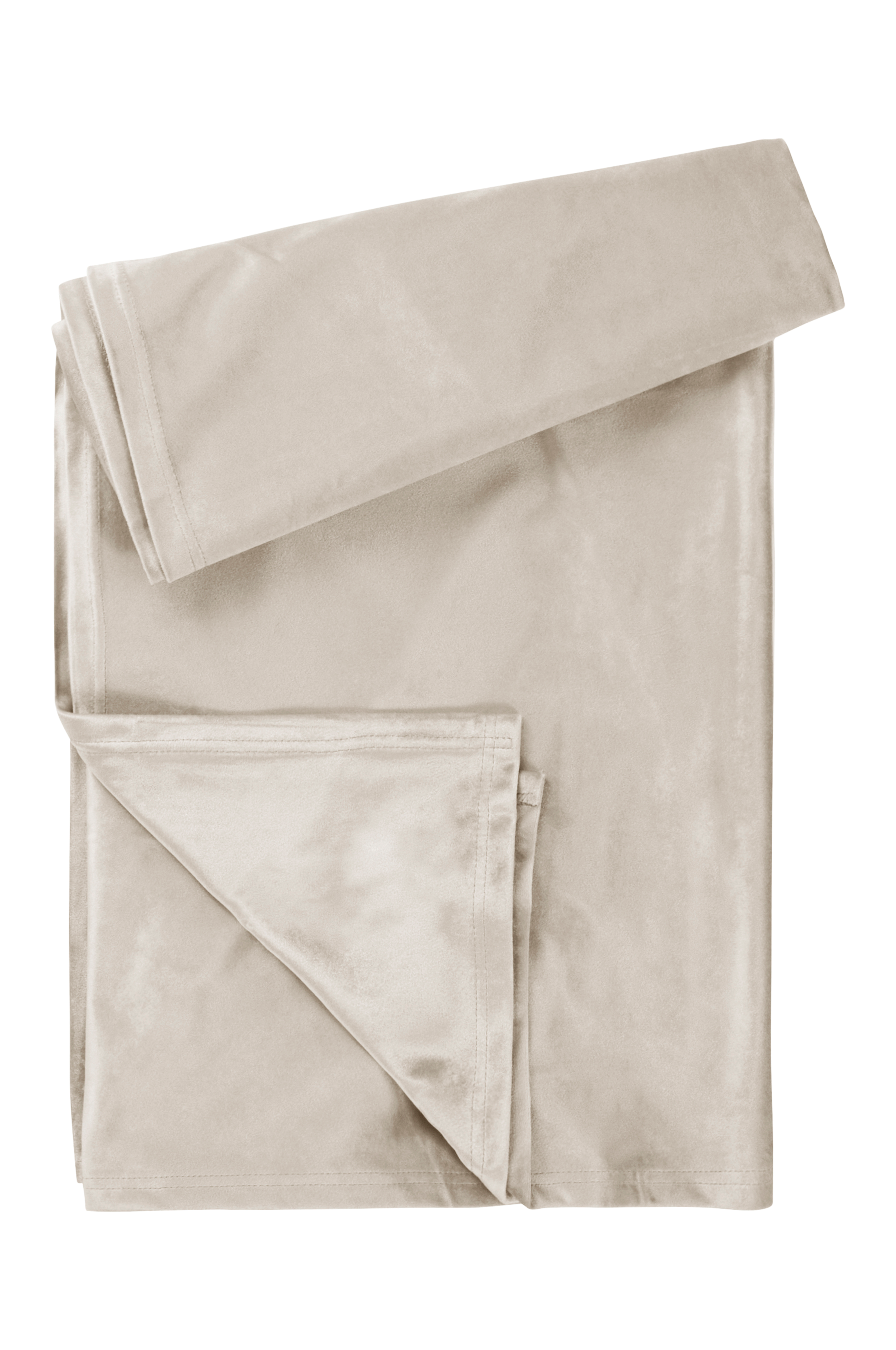 Duk i elegant fløyel av polyester. Fløyelen skimrer vakkert. Fargenyansen oppleves ulik avhengig av hvordan lyset faller. Duken har dobbelstikning rundt. Det føles både luksuriøst og fint å dekke på med fløyel.