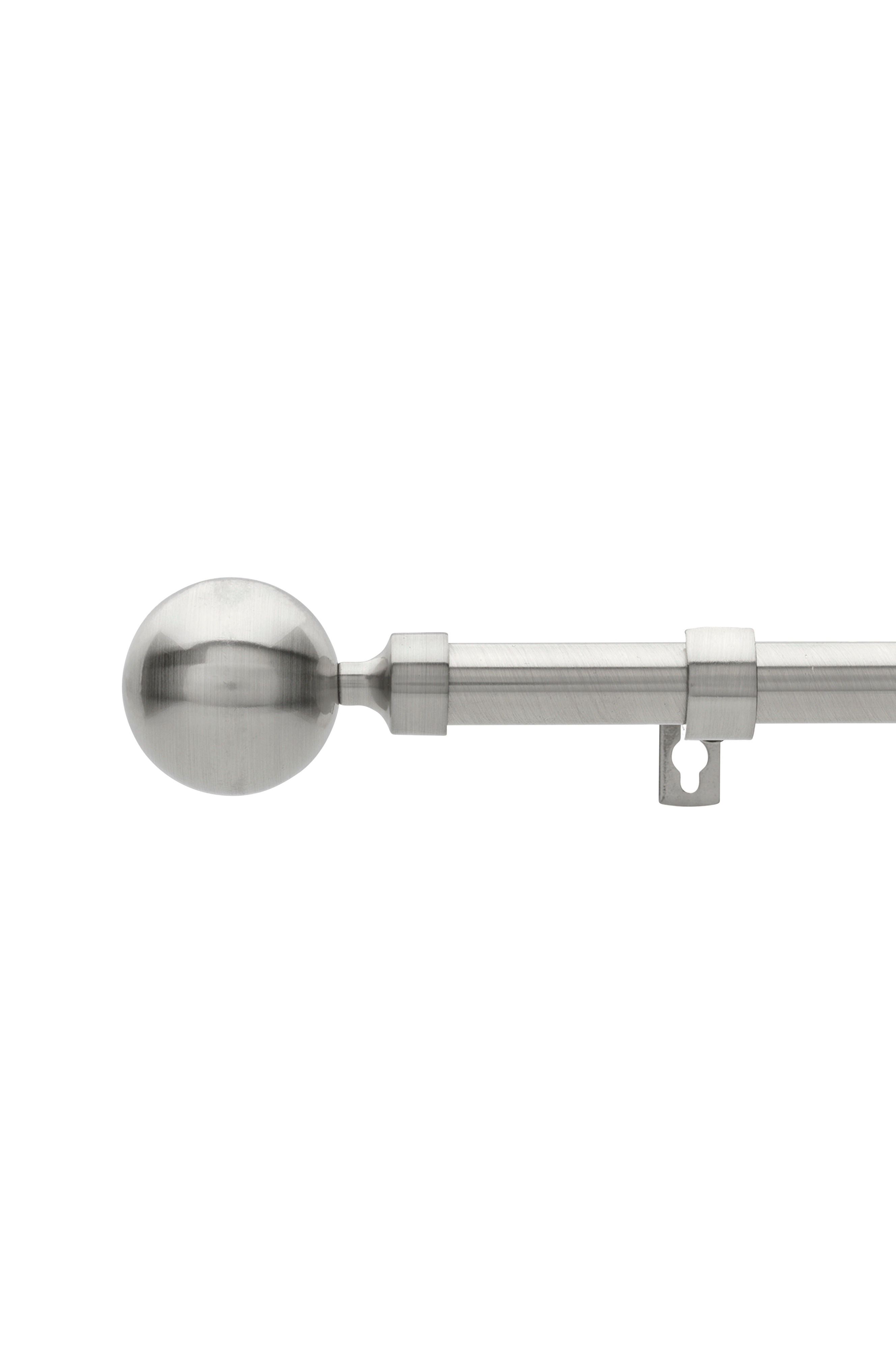 Gardinstang med stang og holdere av jern og endedekor i formstøpt sink. Pen, stilren gardinstang med kulerunde endeknotter. Gardinstangens lengde er justerbar. Endeknottene festes på stangen med en liten skrue. Tre veggfester, skruer og plugg er inkludert. Husk at det alltid er underlaget som bestemmer hvilken type festemetode som er best egnet ved montering.