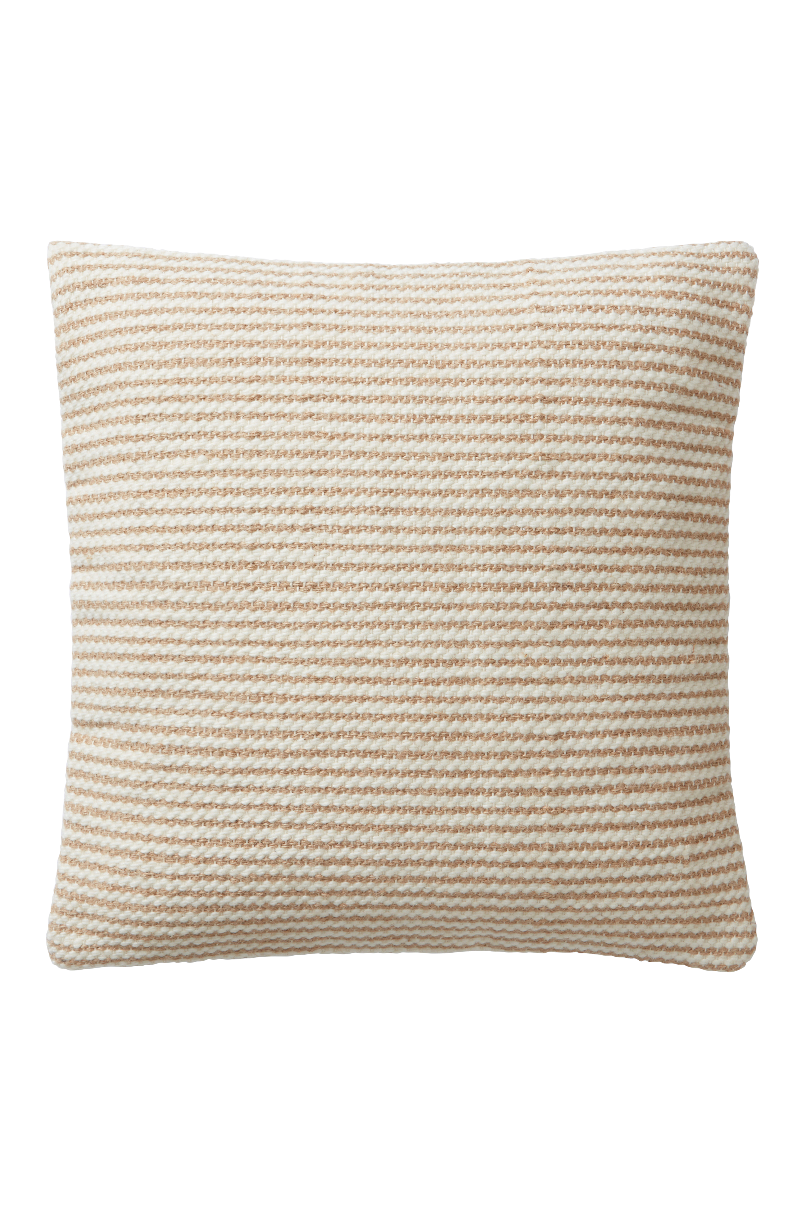 1-pk håndlaget putetrekk med effektfullt stripemønster som er skapt av garn og tråder i ulik tykkelse og fargenyanse. Stoffet på forsiden er av ull og jute, fôr av bomull. Vevd naturhvit bakside av bomull med skjult glidelås.