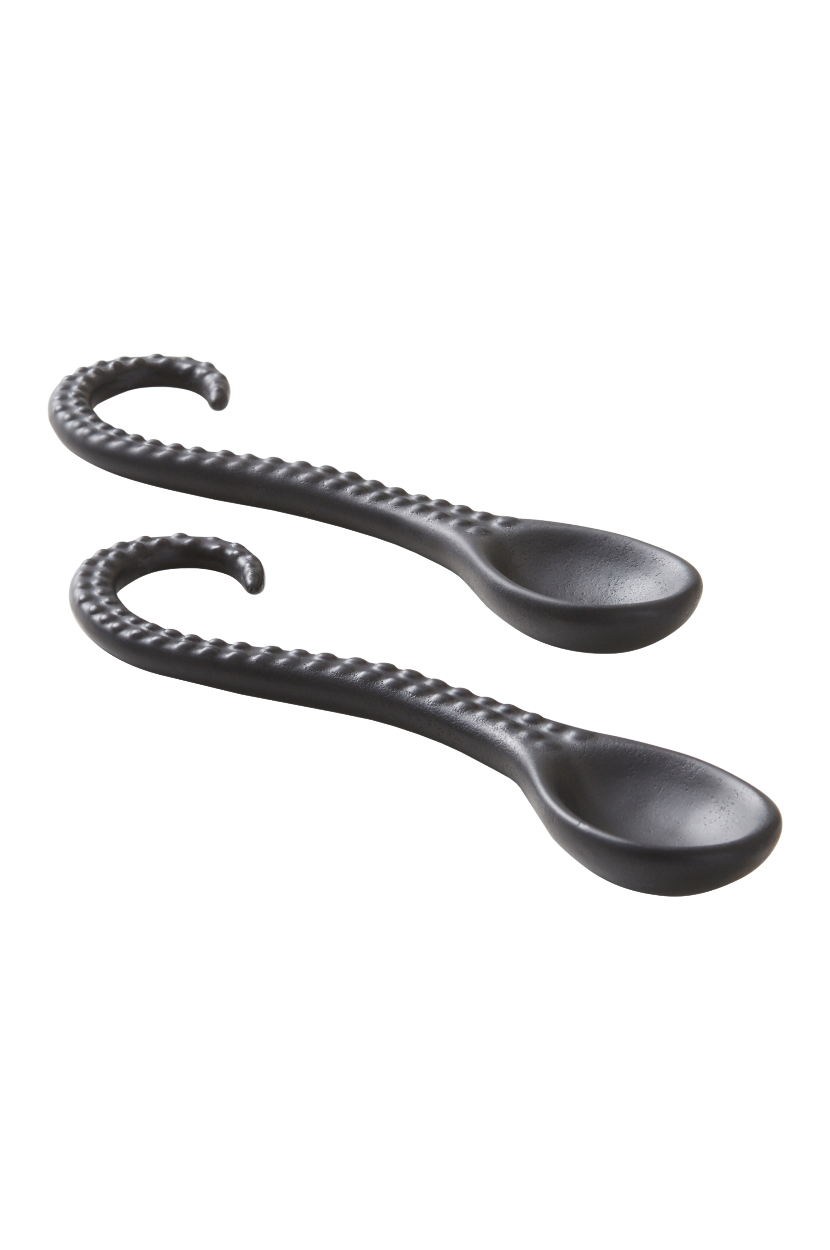 I porselen, veldig tykk. Kan ikke spise med, er for små og grunne til å serveres med. Kan fungere som salatbestikk. I det minste er de veldig stilige og de kommer fine ut s…