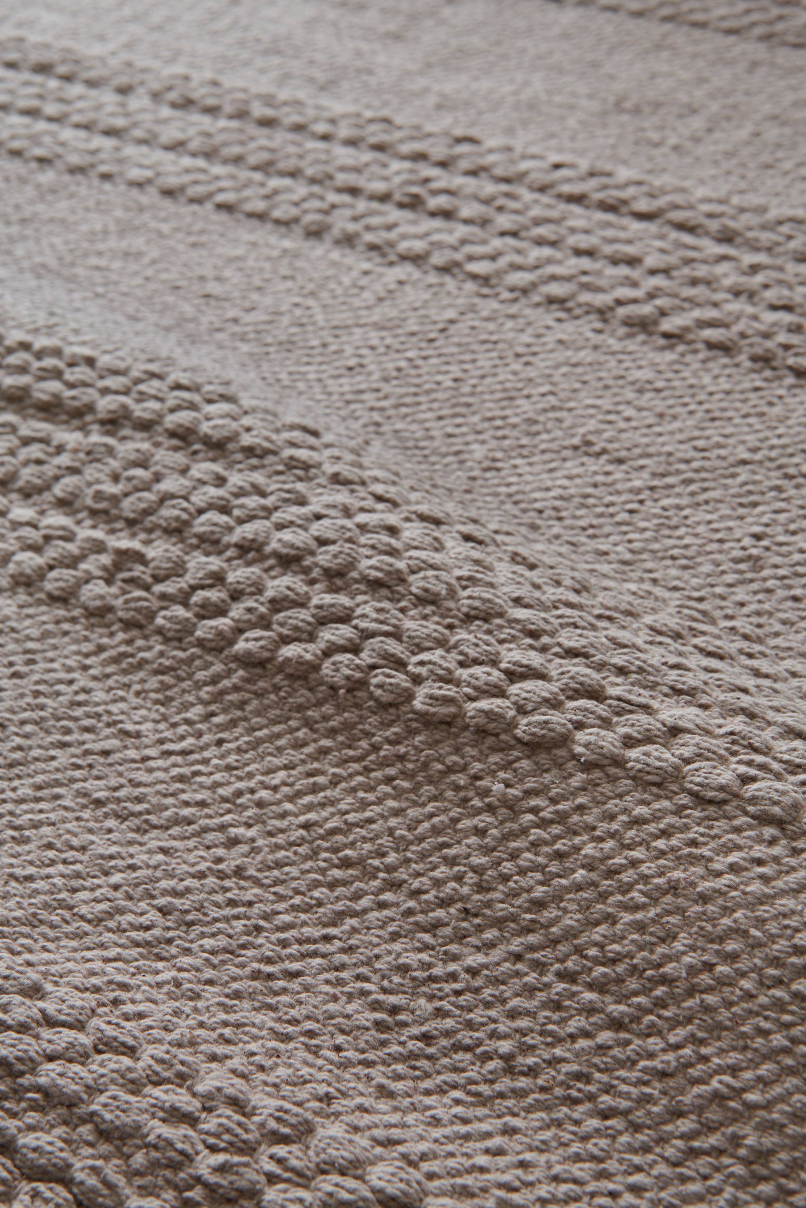 Ensfarget teppe av bomull med vevd teksturstripe ton-i-ton og frynser langs kortsidene. Et klassisk bomullsteppe som passer like fint på kjøkkenet som på barnerommet, gangen eller vaskerommet. TANYA blir en herlig fargeklatt og rommet får en ny utstrålning. Frynselengde 8 cm. Tykkelse 5 mm.
