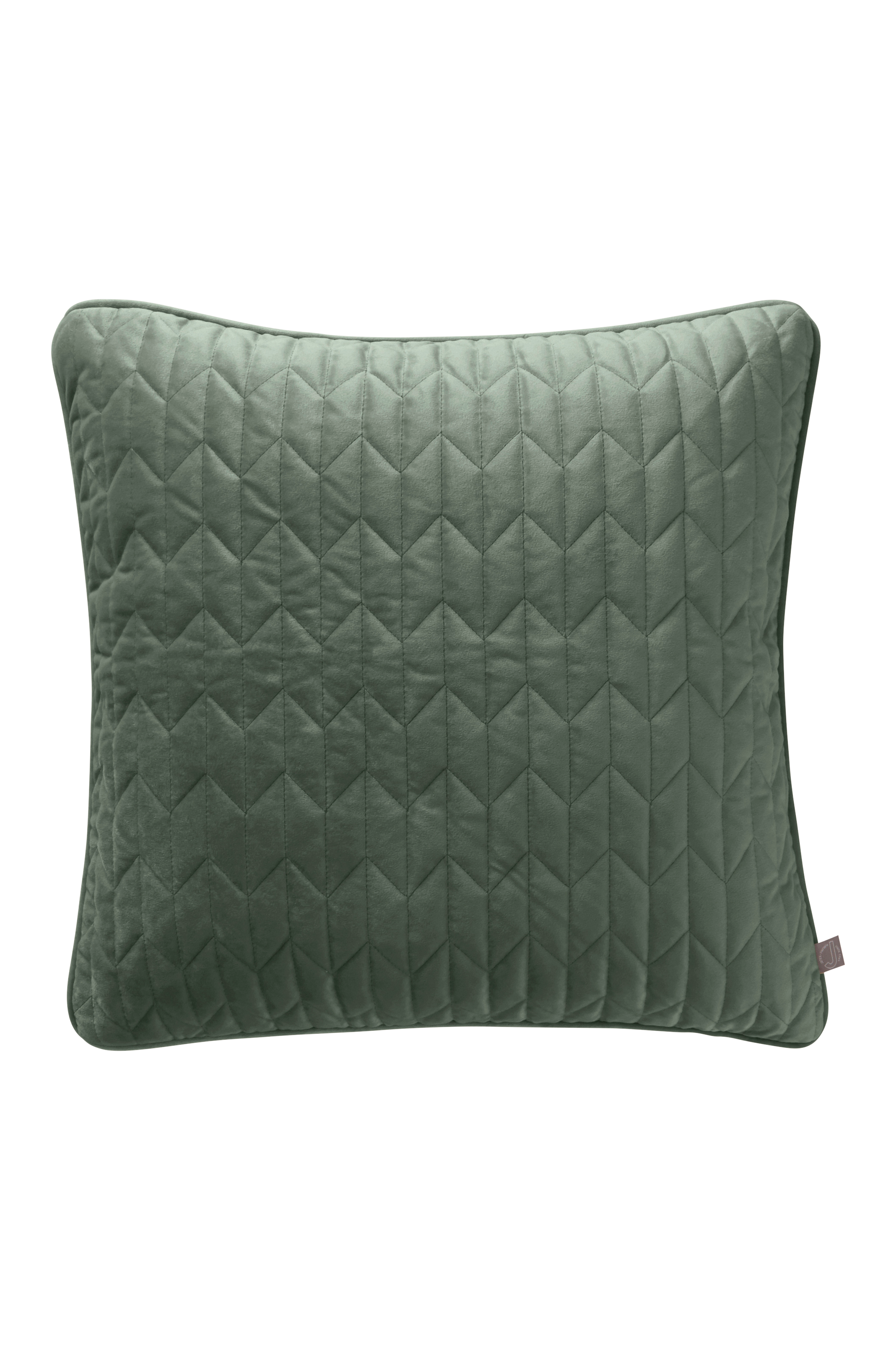 Putetrekk med quiltet overside i fløyel, piping rundt og glidelås i nederkant.