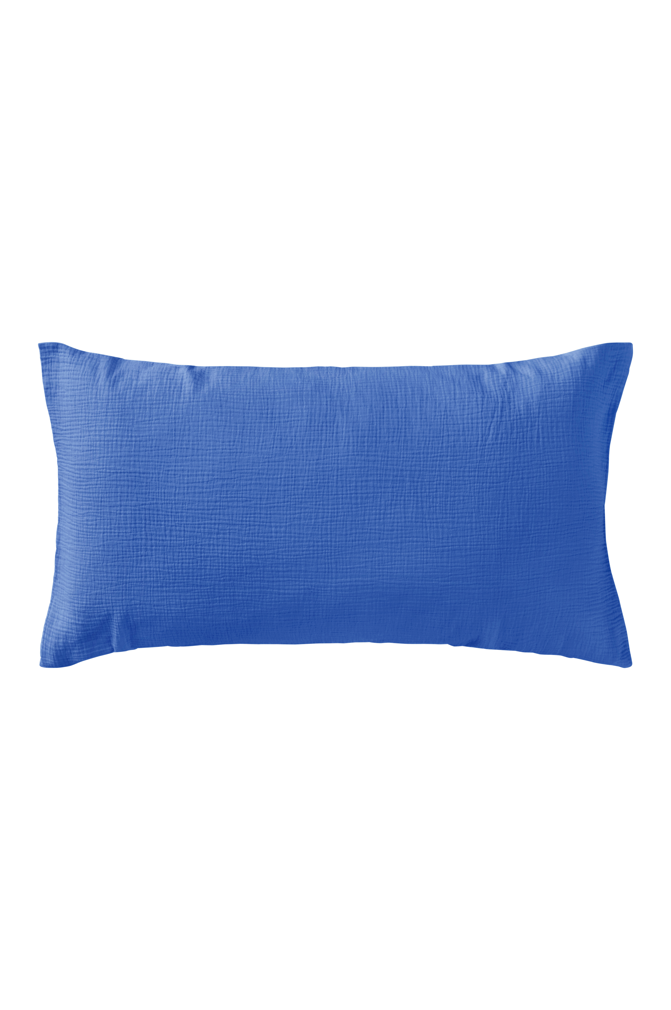 Ensfarget putevar i herlig, økologisk bomullsmusselin. Musselin er et mykt, tynt stoff i to lag, vevd med litt boblete effekt, noe som gjør stoffet mykt og ekstra lettstelt. Du trenger hverken stryke eller mangle. Det er dessuten vasket for en mykere følelse og for å få frem den boblete teksturen. Det behagelige musselinstoffet er deilig å sove i. Trådtetthet på 178 tc. (Trådtettheten forteller om antallet tråder, thread counts, pr. kvadrattomme i et stoff. Jo høyere trådtetthet, desto høyere kvalitet.)