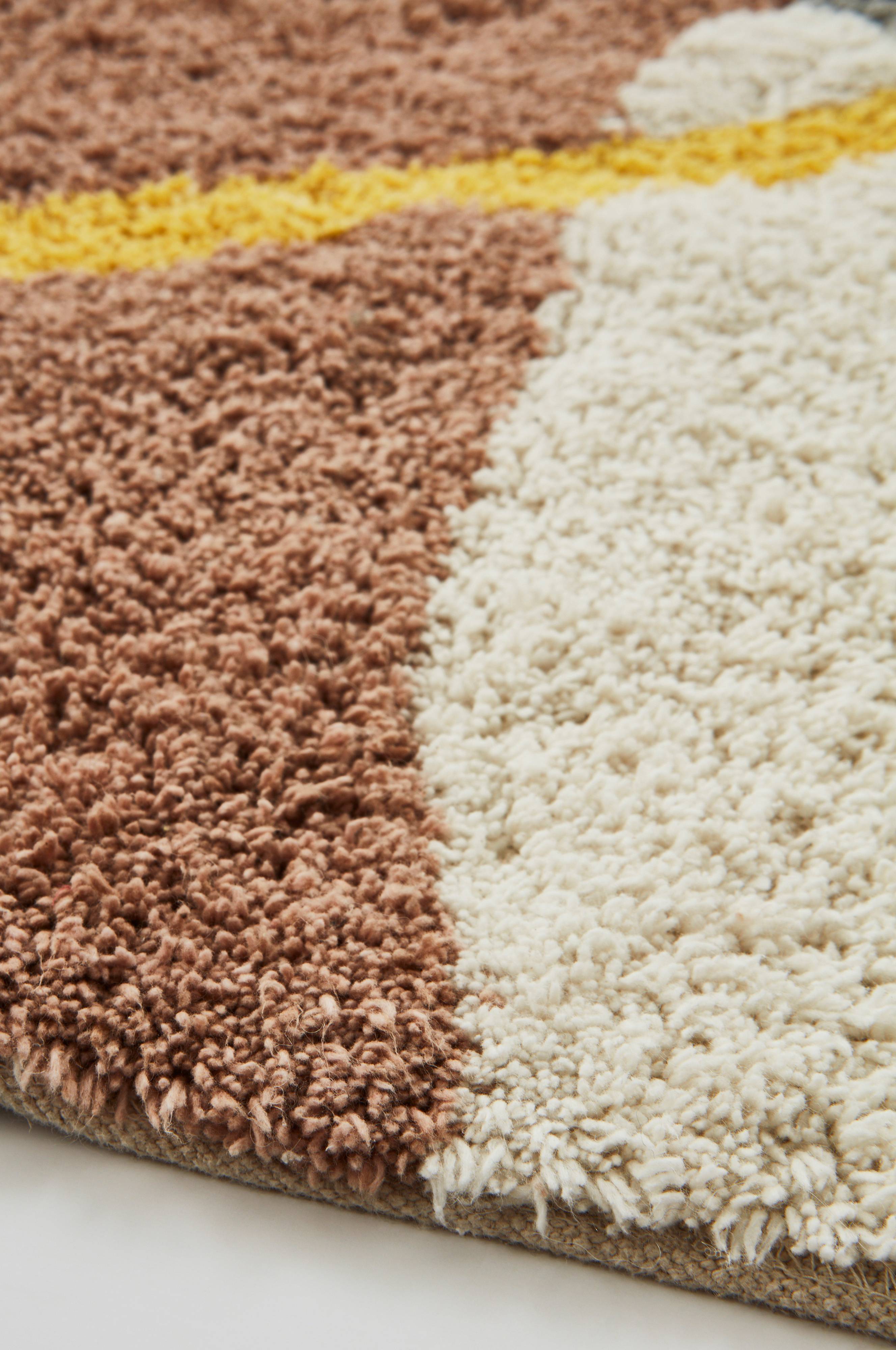 Tuftet bomullsteppe med garnfarget mønster i myke farger og abstrakte former. Bomullsteppet er herlig å sitte og leke på, og passer perfekt på barnerommet. Lugghøyde 1 cm. Tykkelse 1,1 cm. 1506 g/m².