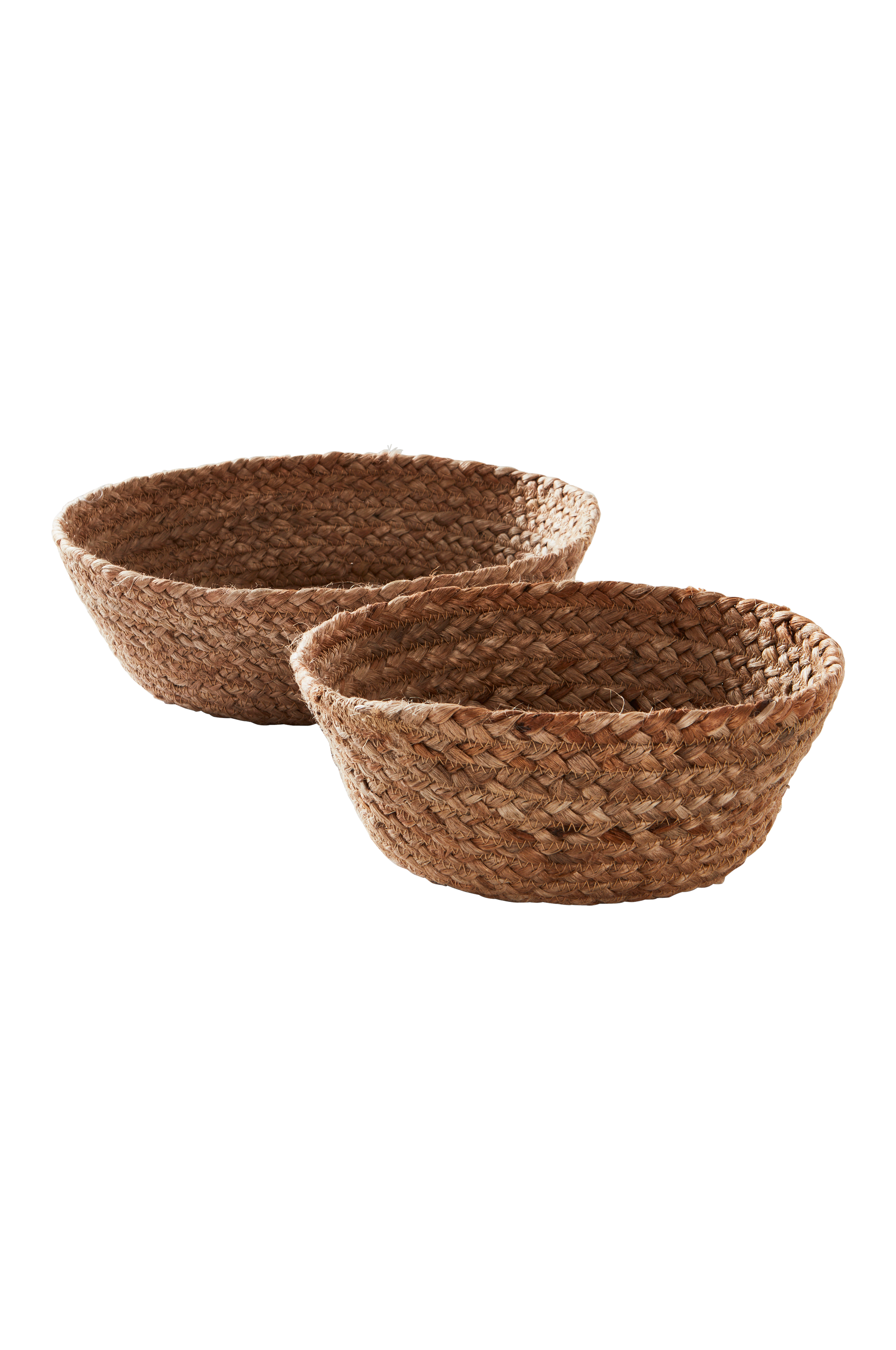 2-pk flettede oppbevaringskurver av jute. Jute er et fint og rustikt naturmateriale, håndverket gjør hver kurv unik. Man kan aldri få for mange kurver, praktisk oppbevaring kombineres med en herlig interiørdetalj som gir litt bohemsk følelse.