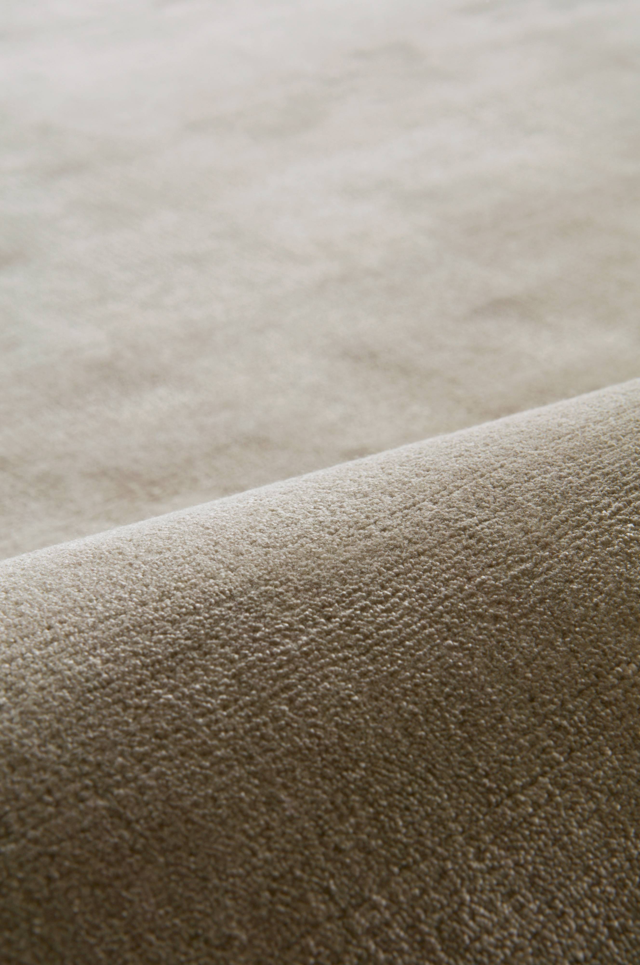 Luksuriøst, ensfarget viskoseteppe med kort, tett lugg som har vakker, silkematt glans. Lugghøyde 7-9 mm, 3500 g/m².
