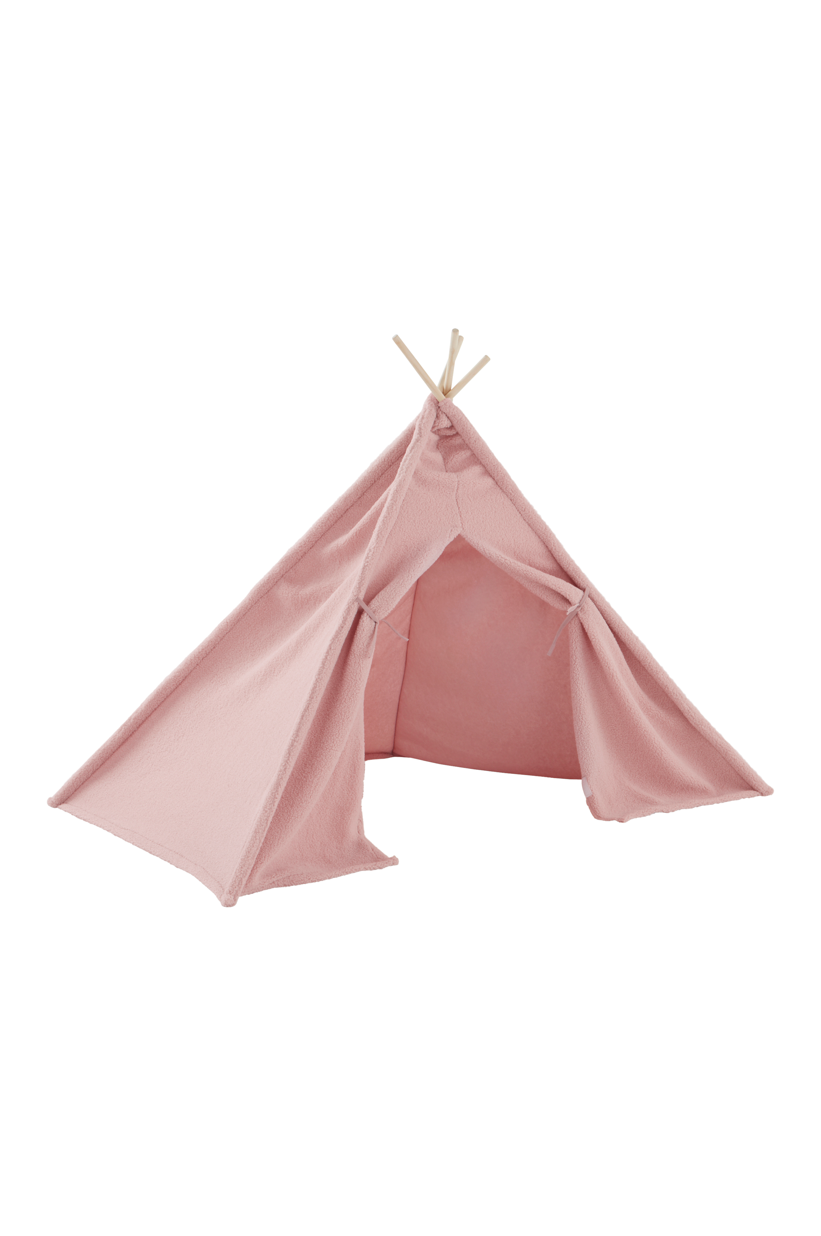 Barnetelt eller leketelt av teddystoff med fire teltpinner av tre. Åpning med borrelås og knytebånd foran. Teltduken er i mykt teddystoff av polyester. Teltet passer utmerket til lek eller koselige eventyrstunder, og blir en fin interiørdetalj på barnerommet. Produktet er CE-merket. Det betyr at leken oppfyller kravene i gjeldende EU-lover.