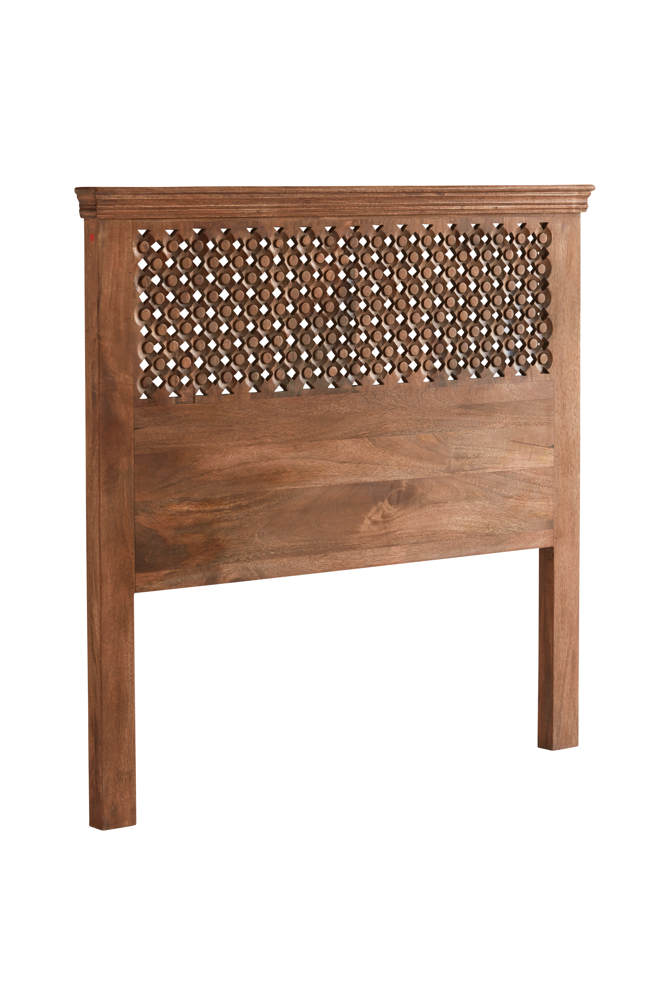Beskrivelse: Sengegavl i utskjært mangotre.