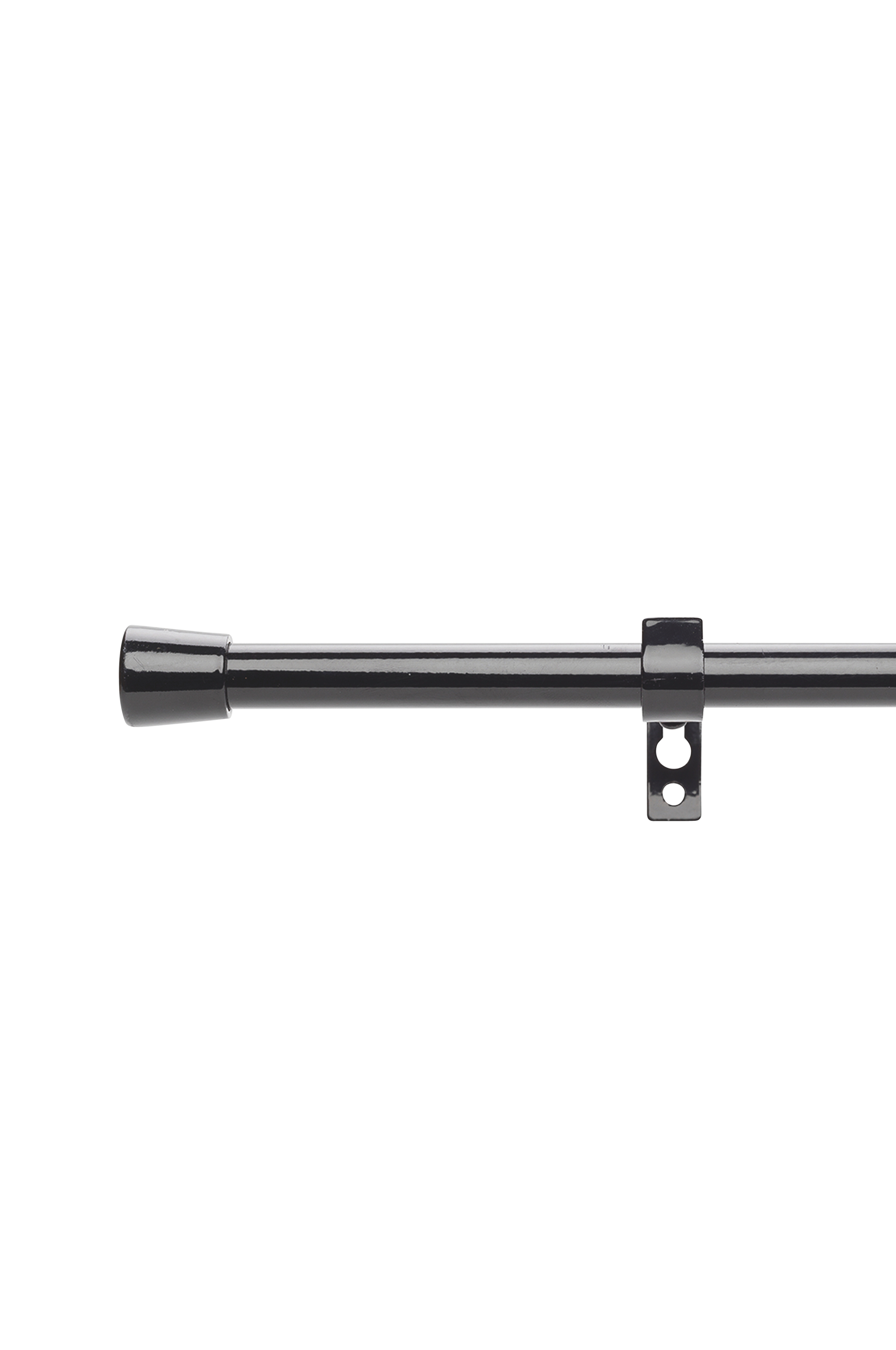 Gardinstang med stang og holdere av jern, og endedekor i formstøpt sink. Kirsch TWIGGY er et stilrent, komplett gardinstangsett med endedekor og faste holdere. TWIGGY, med sin litt nettere stang, diameter 16 cm, passer best til tynne og lette gardiner. Gardinstangens lengde er justerbar. Endeknottene trykkes på gardinstangen. Tre veggfester, skruer og plugg er inkludert. Husk at det alltid er underlaget som bestemmer hvilken type festemetode som er best egnet ved montering.