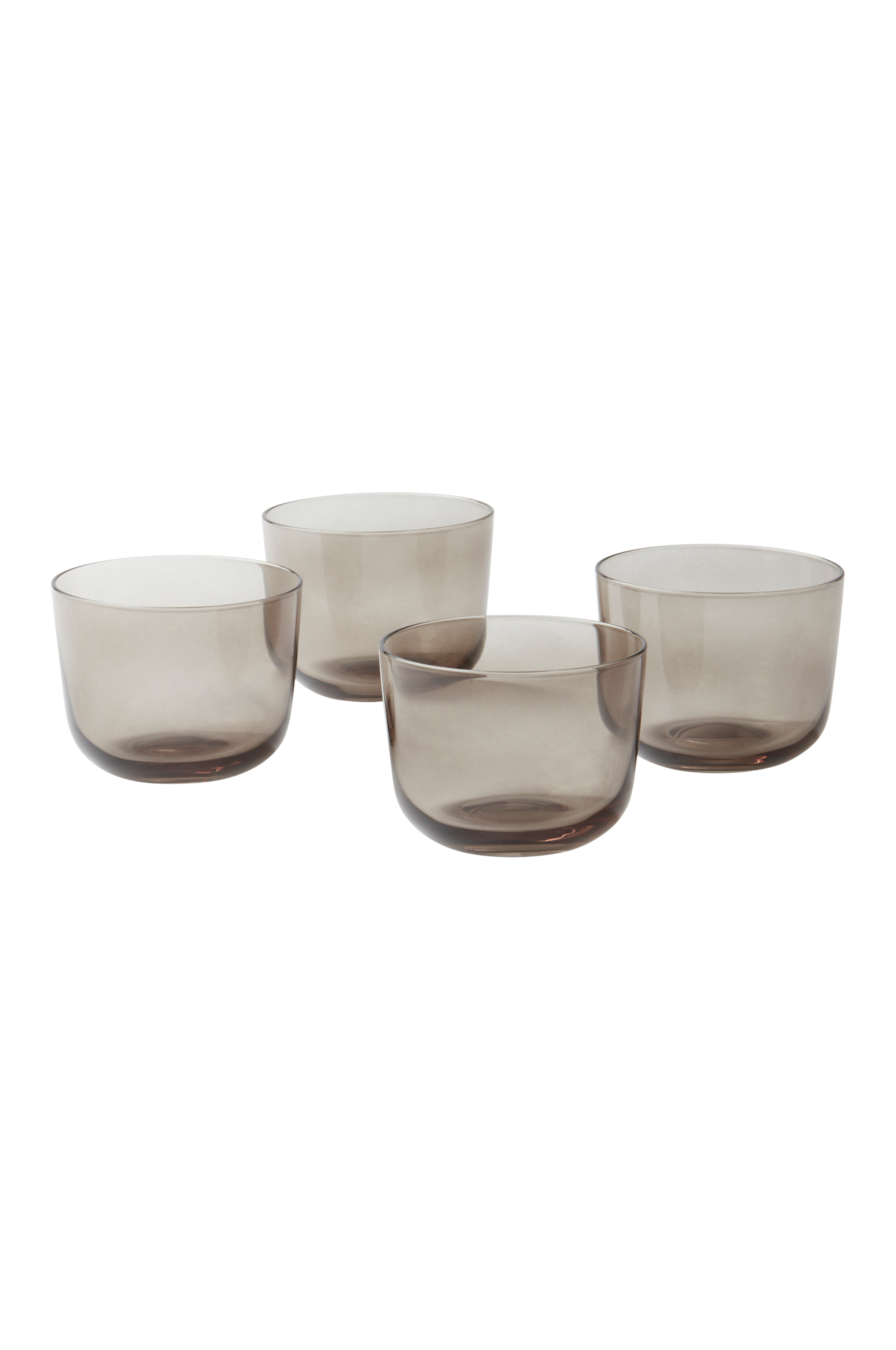4-pk glass av røykfarget glass som gir drikken en appetittlig innramming. De smekre glassene har myke linjer. I serien VANNA er det glass som matcher fint når du dekker middagsbordet til gjester.